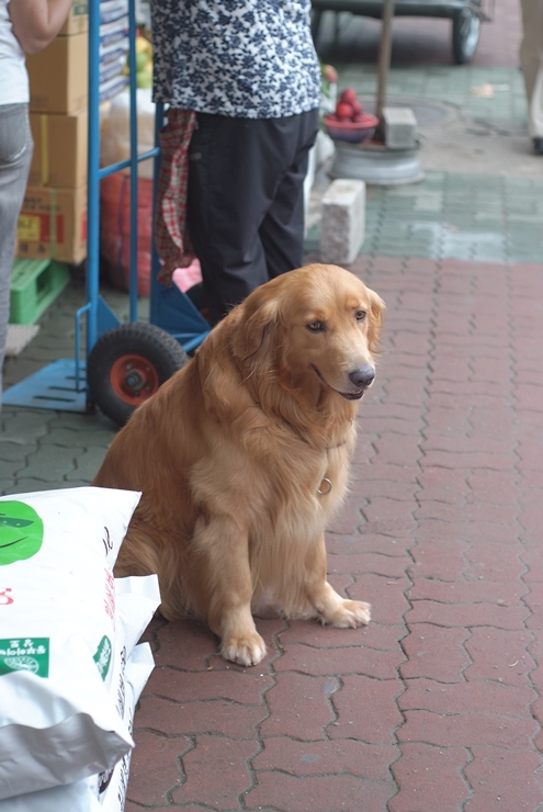 골든리트리버가 시장한켠에 다소곳이 앉아있네요 순한녀석이었습니다.