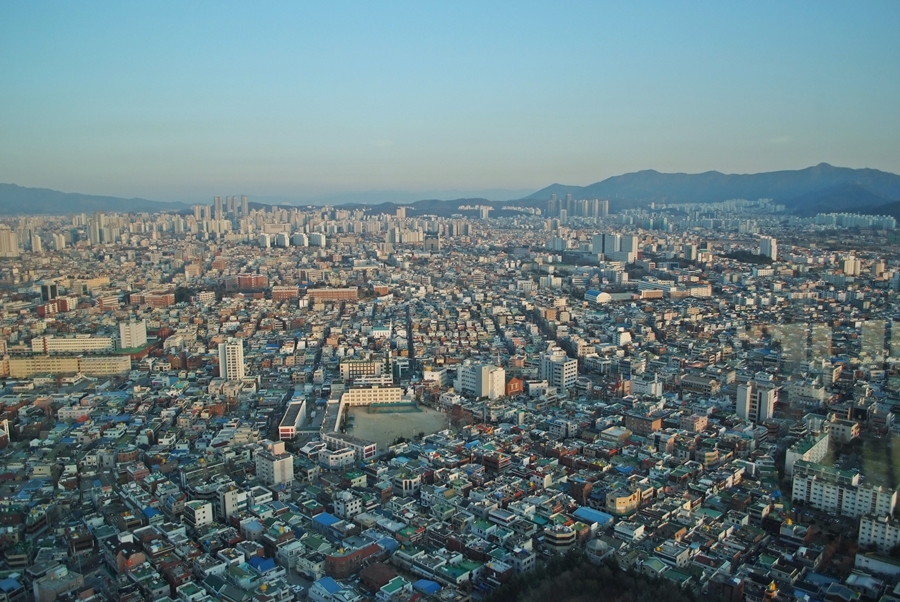야경. 감천문화마을과 닮은 주황불빛의 옹기종기 모인 빌라들.