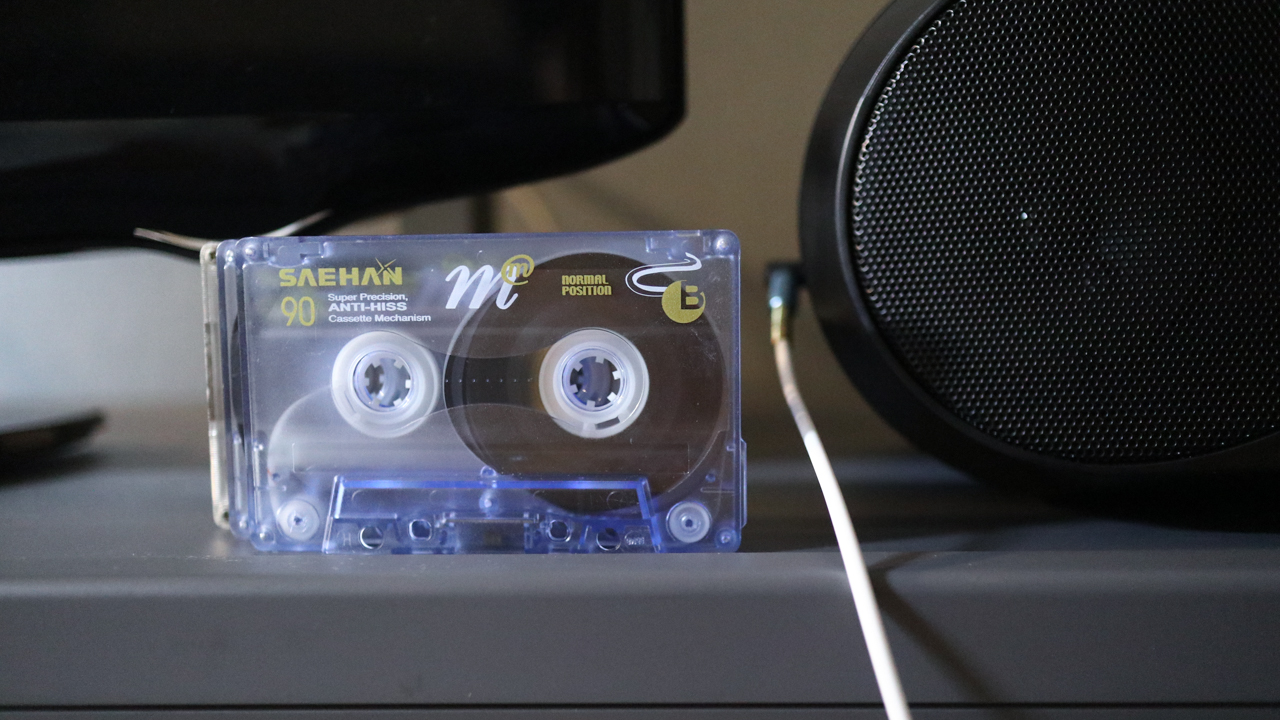 카세트 붐박스에서 테이프 재생을 하면 (잡음이 많지만) 녹음이 된다.
