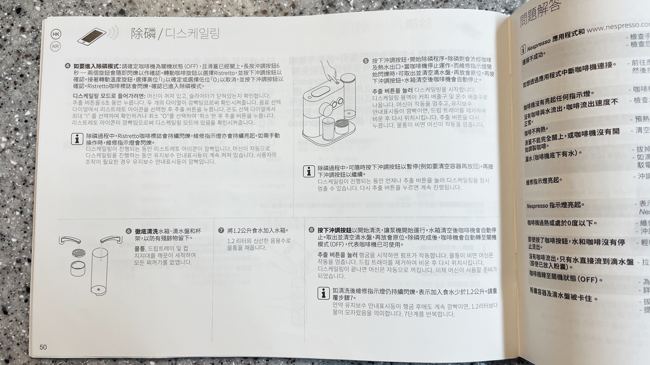네스프레소 제품 디스케일링 부분 매뉴얼.