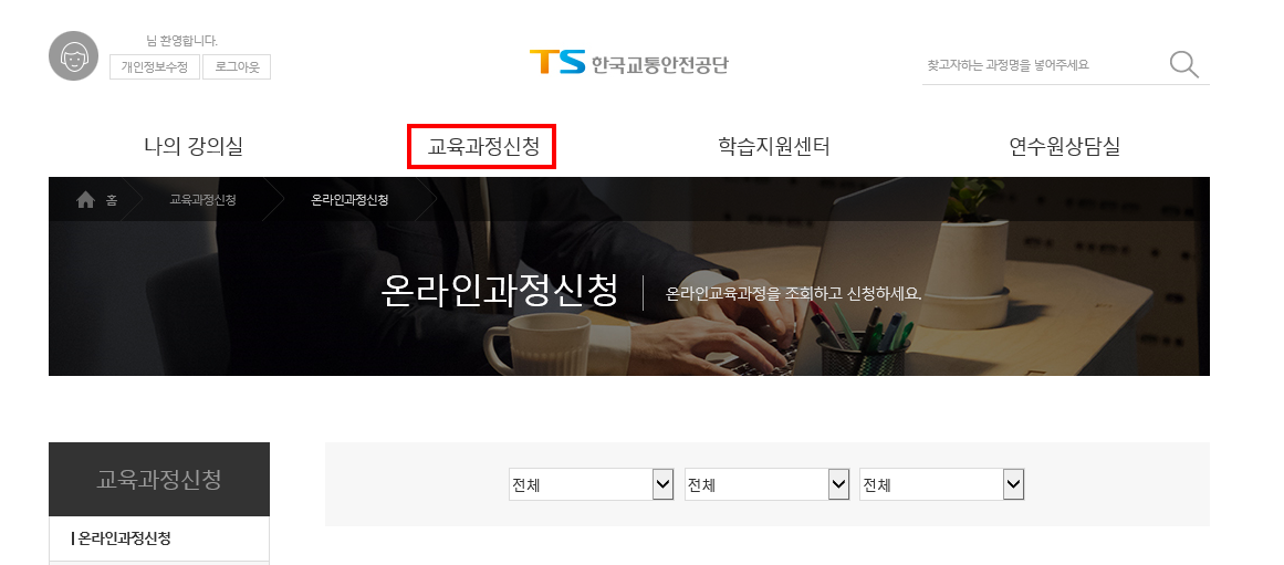 2-3. 나의강의실 -> 학습 중/예정 과정에서 학습하기 눌러 학습.