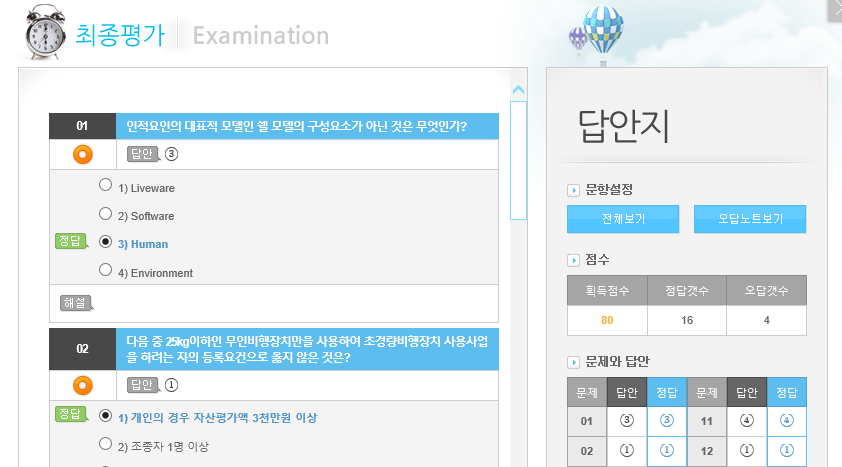 시험문제는 20문항 총 100점으로 14개이상 맞추면 된다.