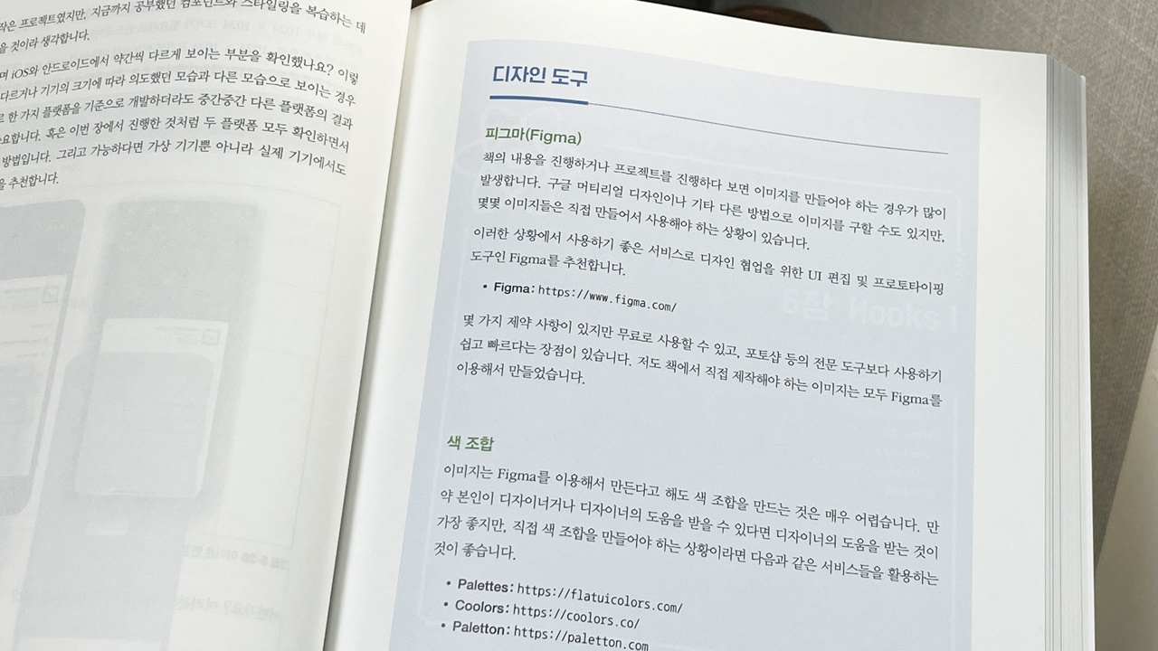 5장에서는 To-do list 애플리케이션을 제작해본다. 와이어프레임을 보여주고 프로젝트 준비 - 컴포넌트 만들기 - 기능 구현하기 - 데이터 저장하고 불러오기, 로딩화면 변경하기까지 나의 첫번째 리액트 네이티브 앱이 완성된다.