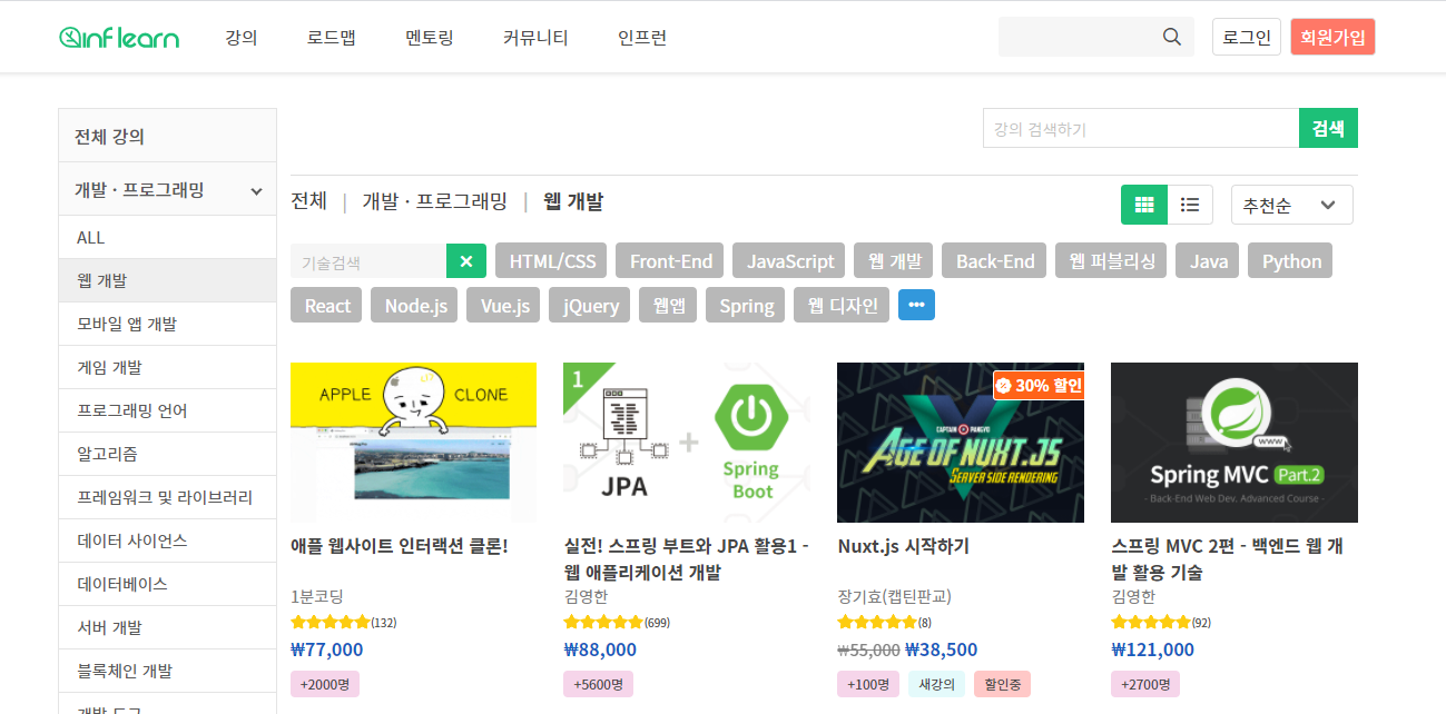웹 개발 강의 - 추천순 웹 개발 온라인 강의 | 인프런