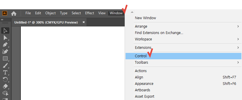 상단 메뉴아래 컨트롤러 표시하기 : Window → Control 클릭 하면 나온다 .