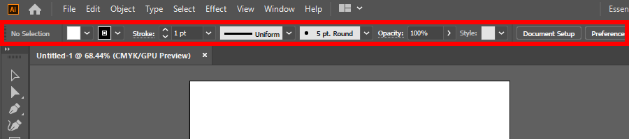 일러스트레이터 회색 박스 없애기 (+ 상단 메뉴아래 컨트롤러 표시하기)