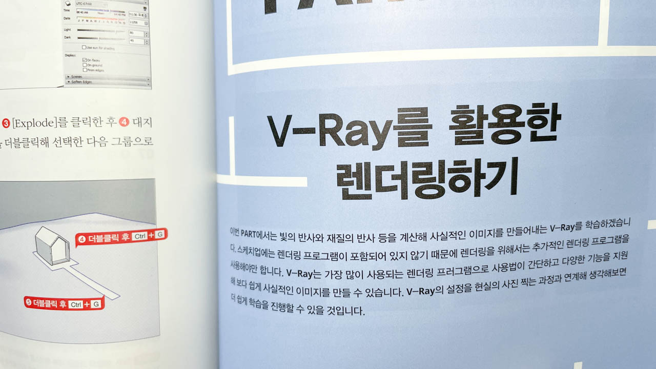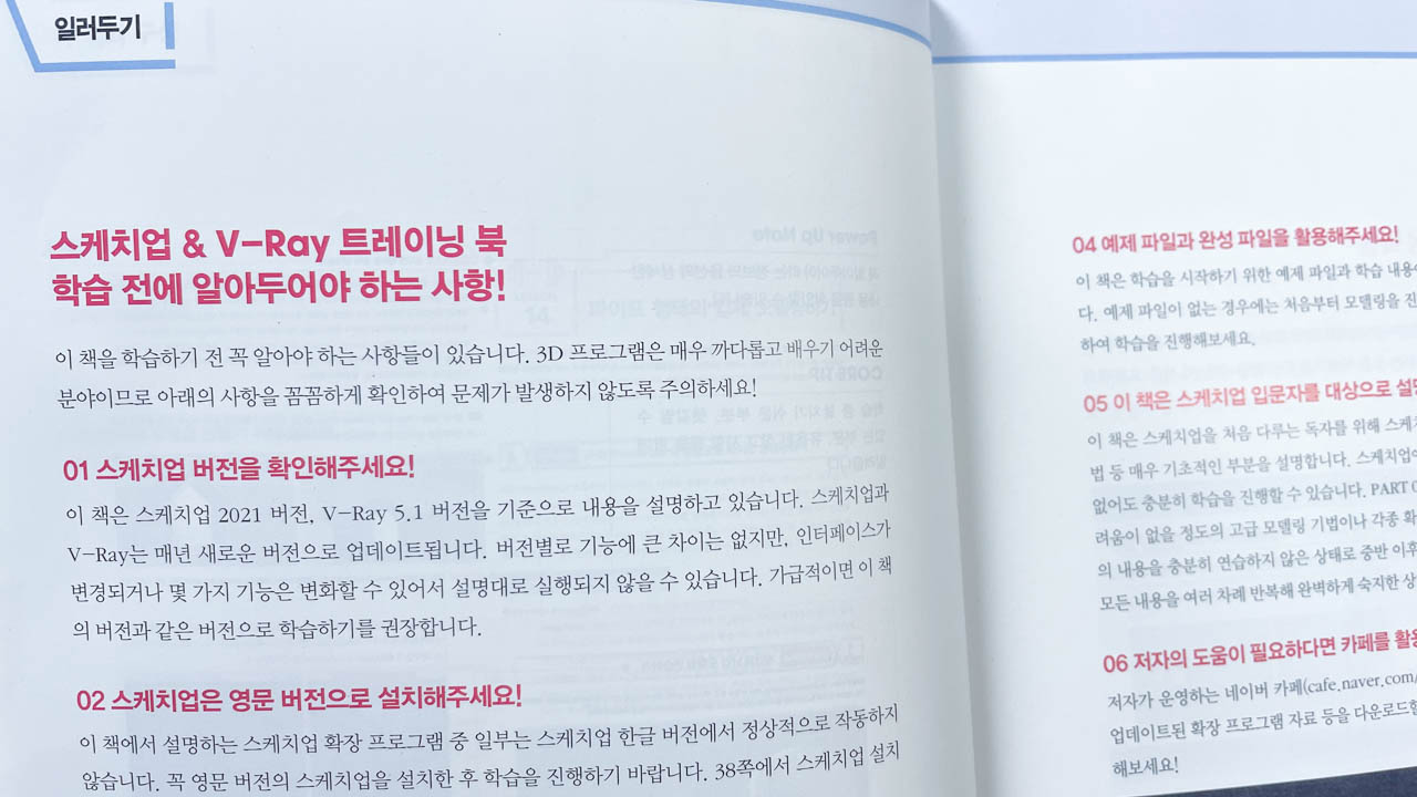 책에서는 스케치업 2021버전, 브이레이 5.1버전을 기준으로 다루고 있다.
