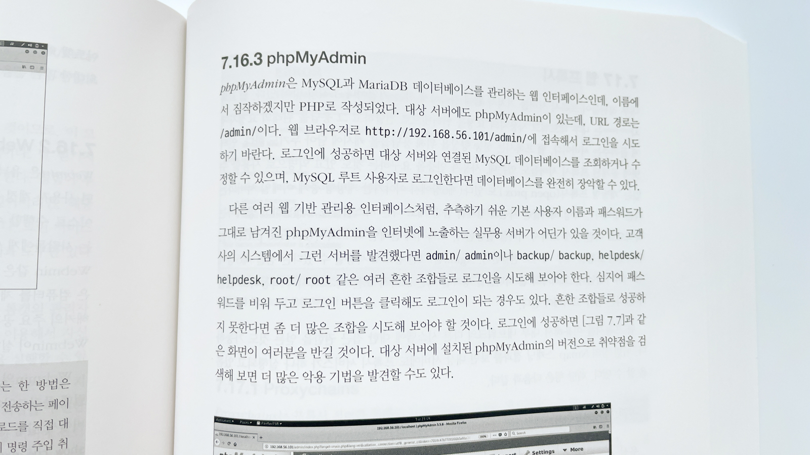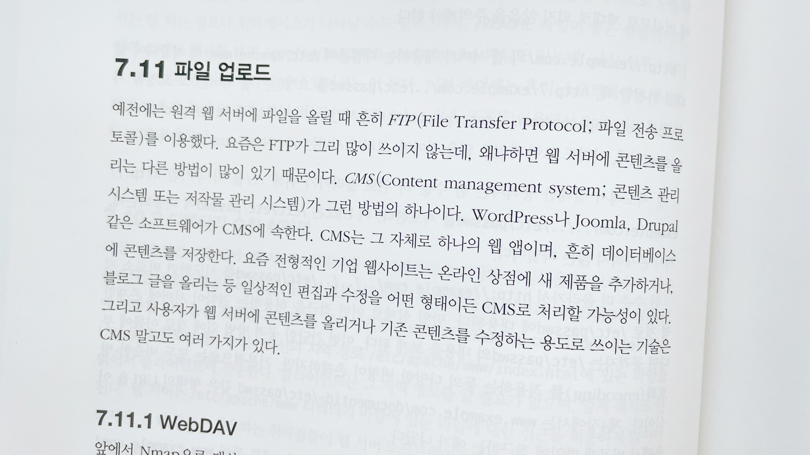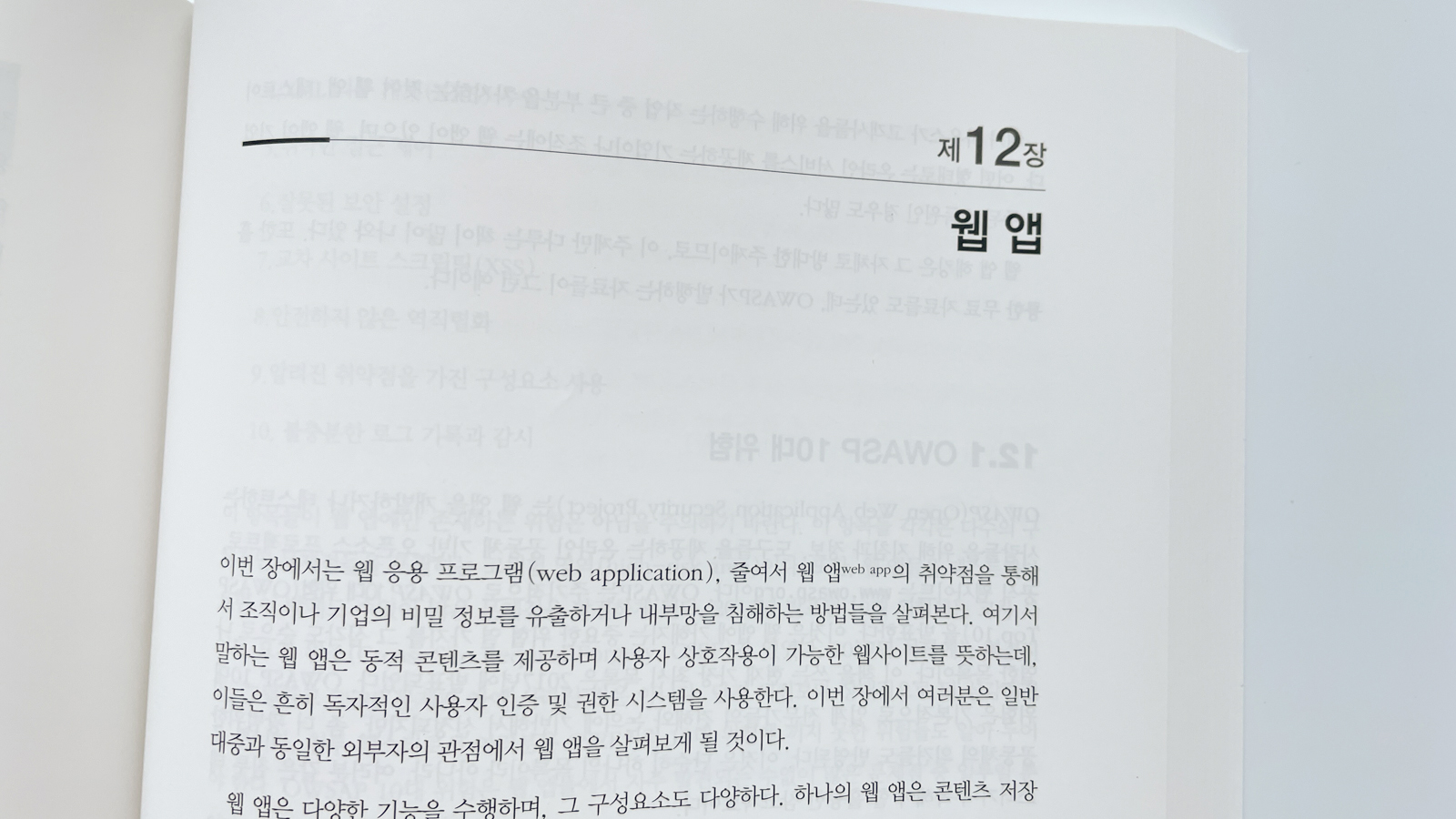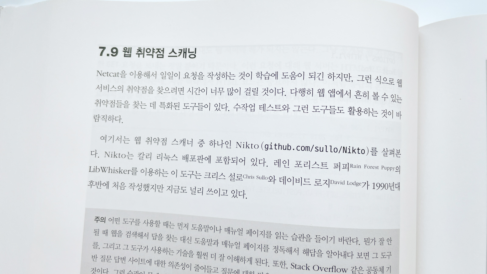 7장에서는 웹 서버 취약점을, 12장에서는 웹 앱에 대한 테스트와 공략을 다룬다.