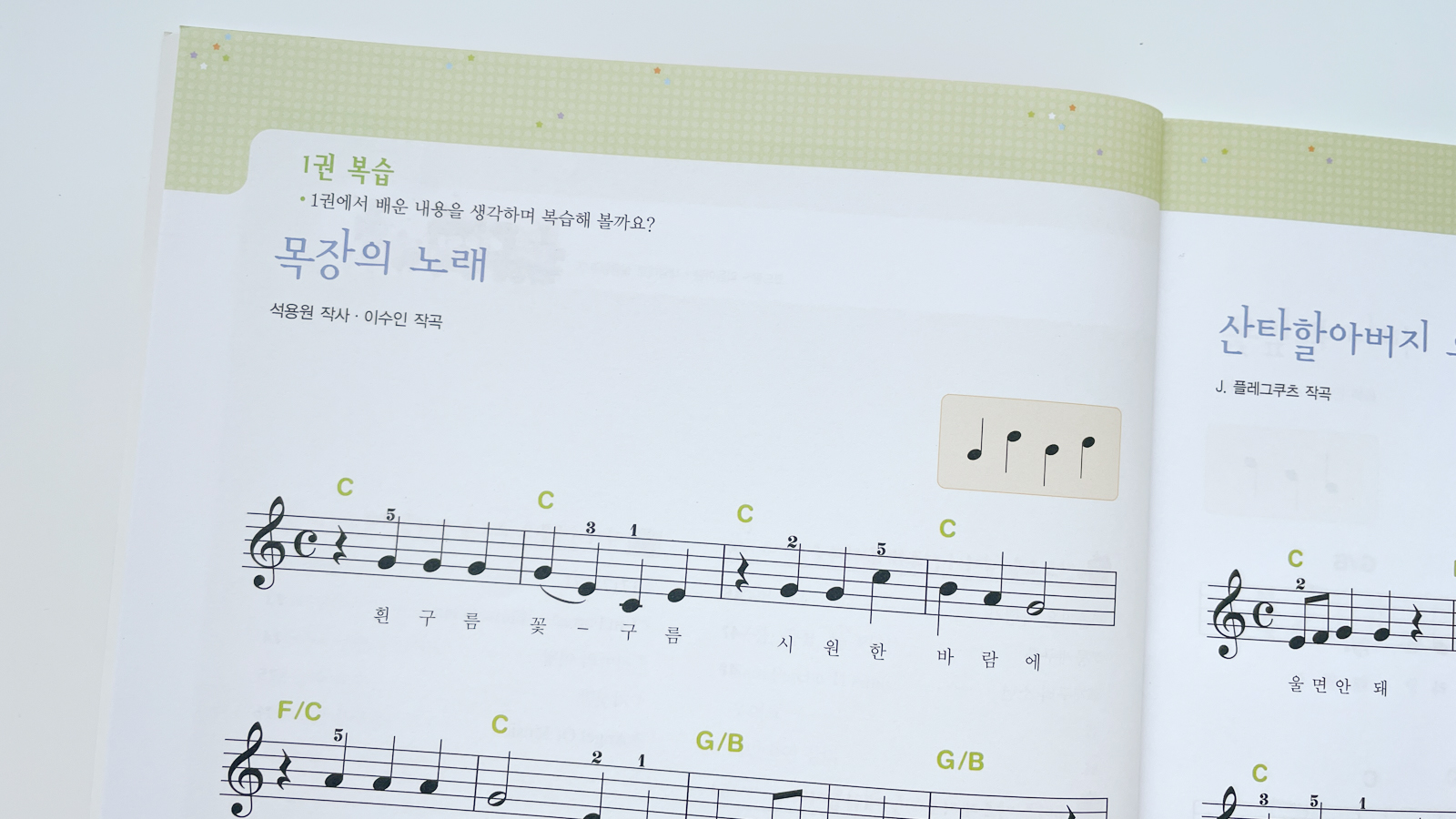 삼호뮤직 출판사에는 스프링으로 나오는 책이 많아서 펼쳐 보기도 좋고, 대체로 음표가 매우 크다.
