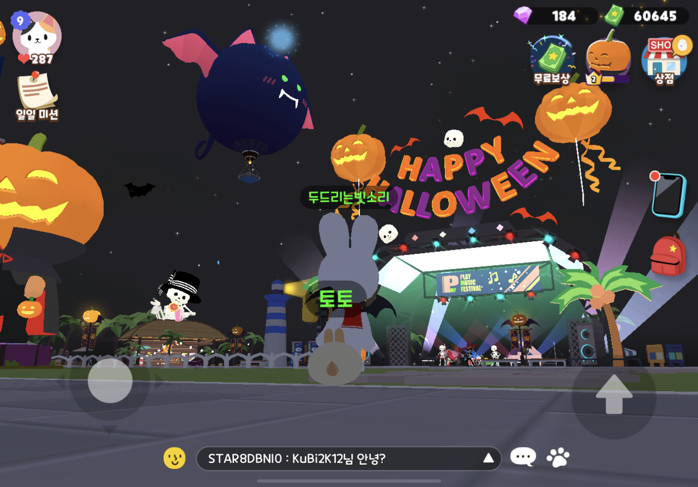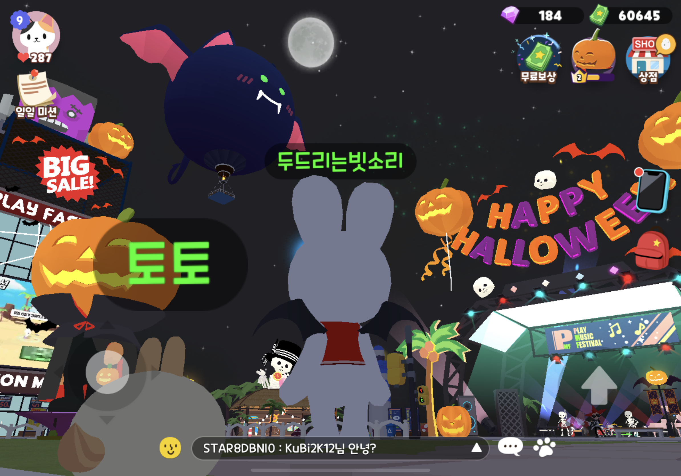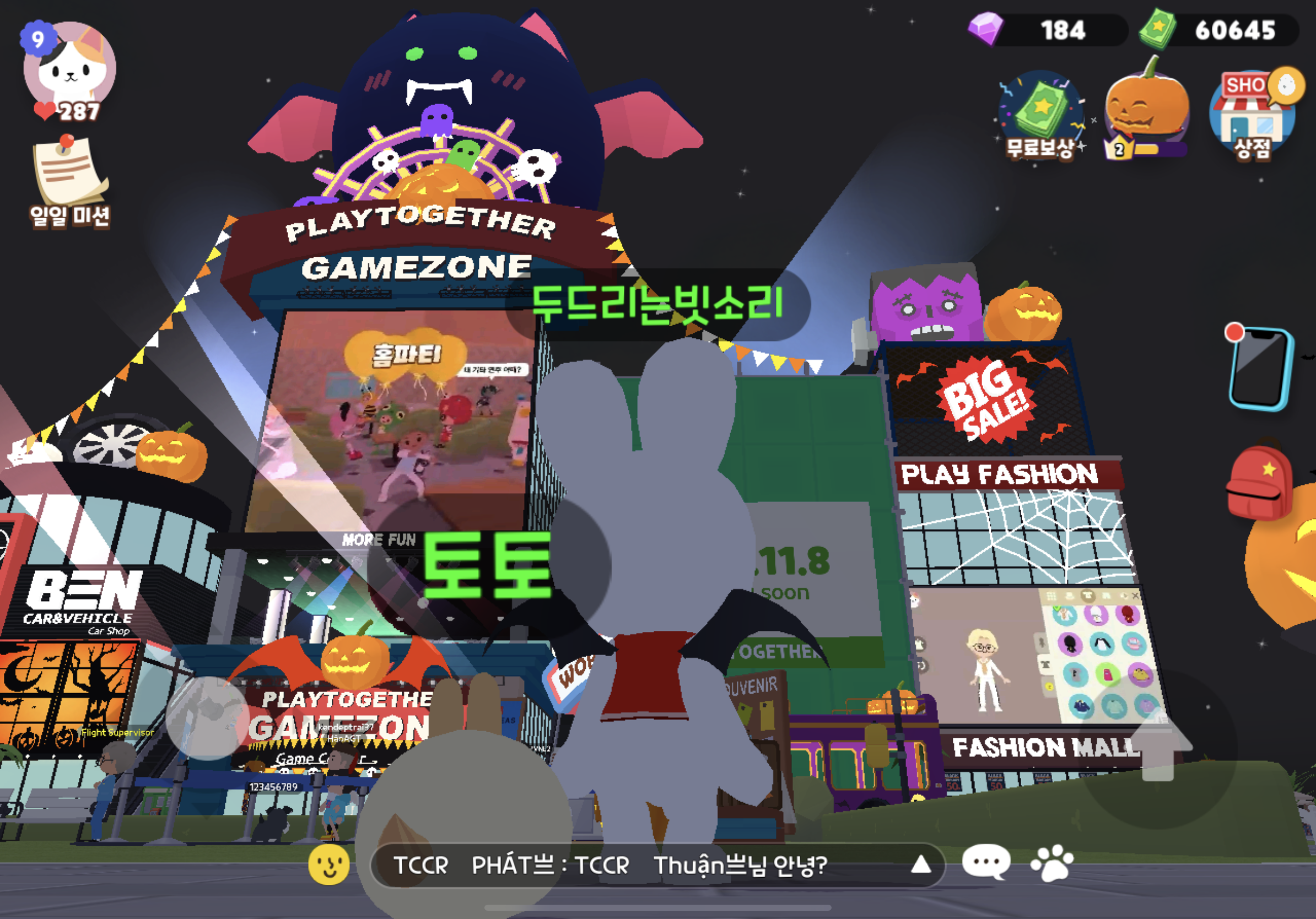 플레이투게더 할로윈 맞이! 10월 중순쯤 업데이트를 하더니, 테마가 모두 바뀌었다.