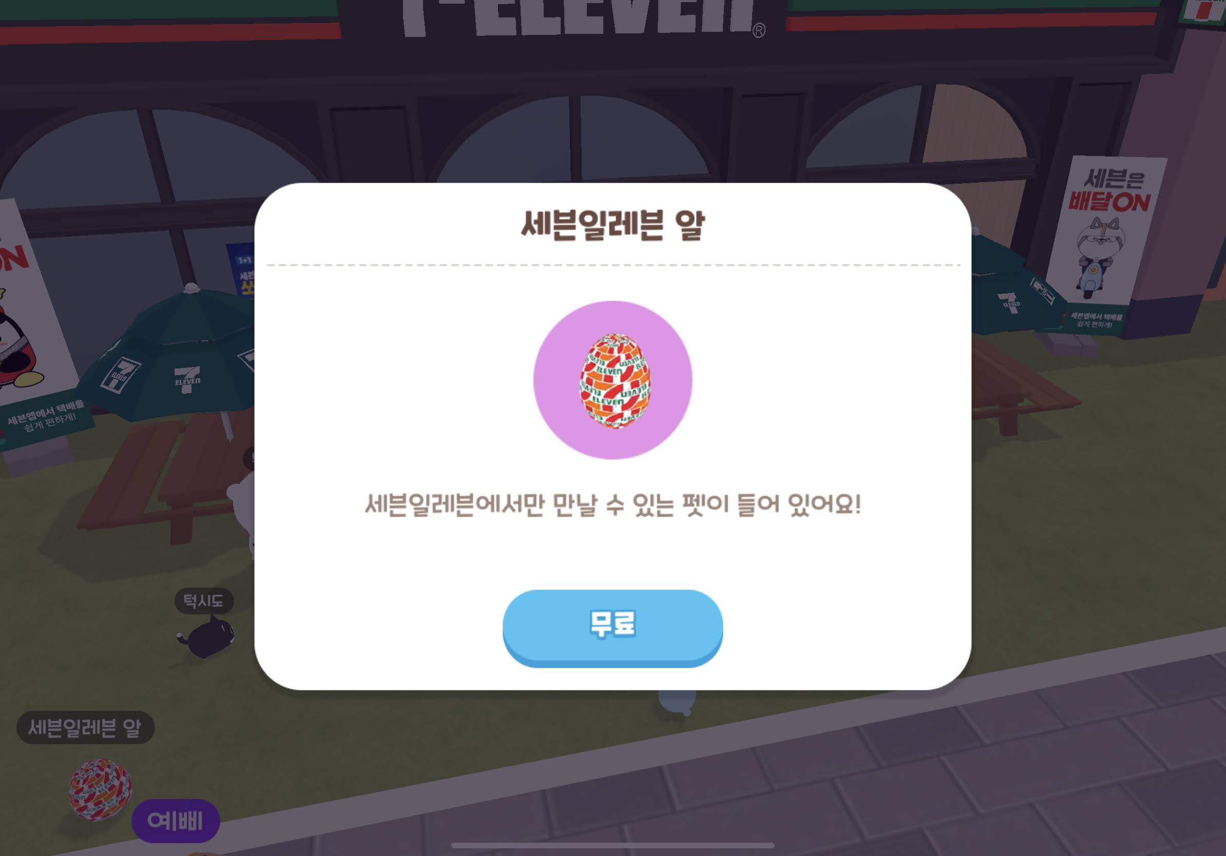 약간의 업데이트를 하더니 세븐일레븐 전용 알(펫)을 준다고!! 당장 받아야지.