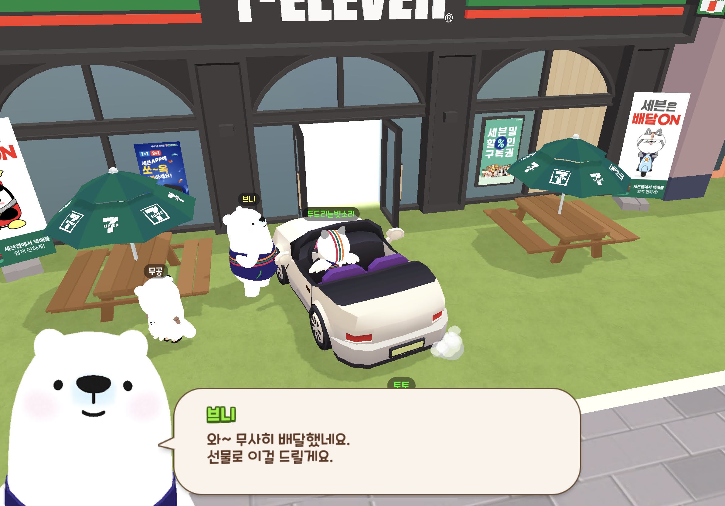 마트가 사라지고 들어온 편의점. 굉장히 귀여운 곰 브니가 일하는 곳이다.