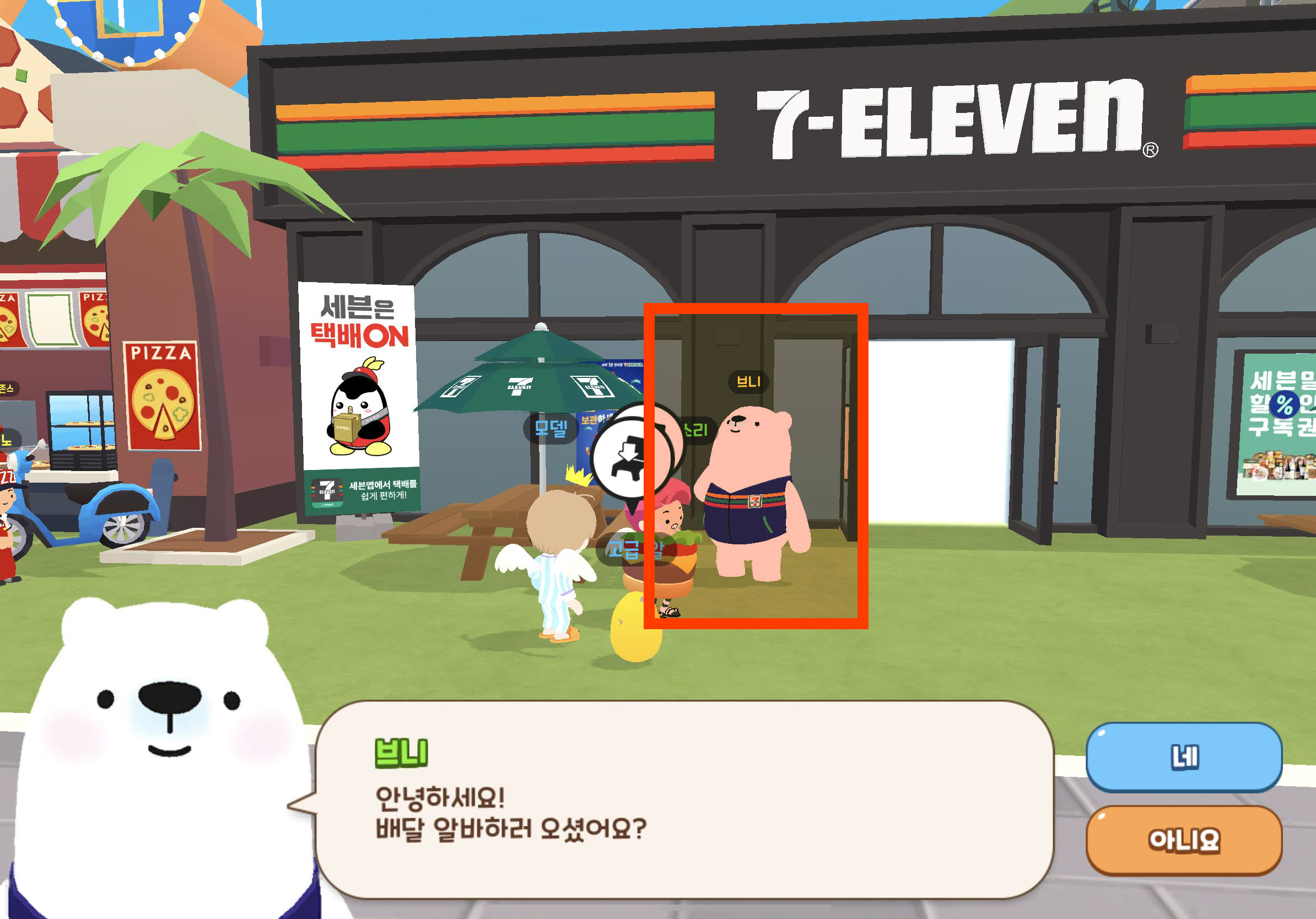 마트가 사라지고 들어온 편의점. 굉장히 귀여운 곰 브니가 일하는 곳이다.