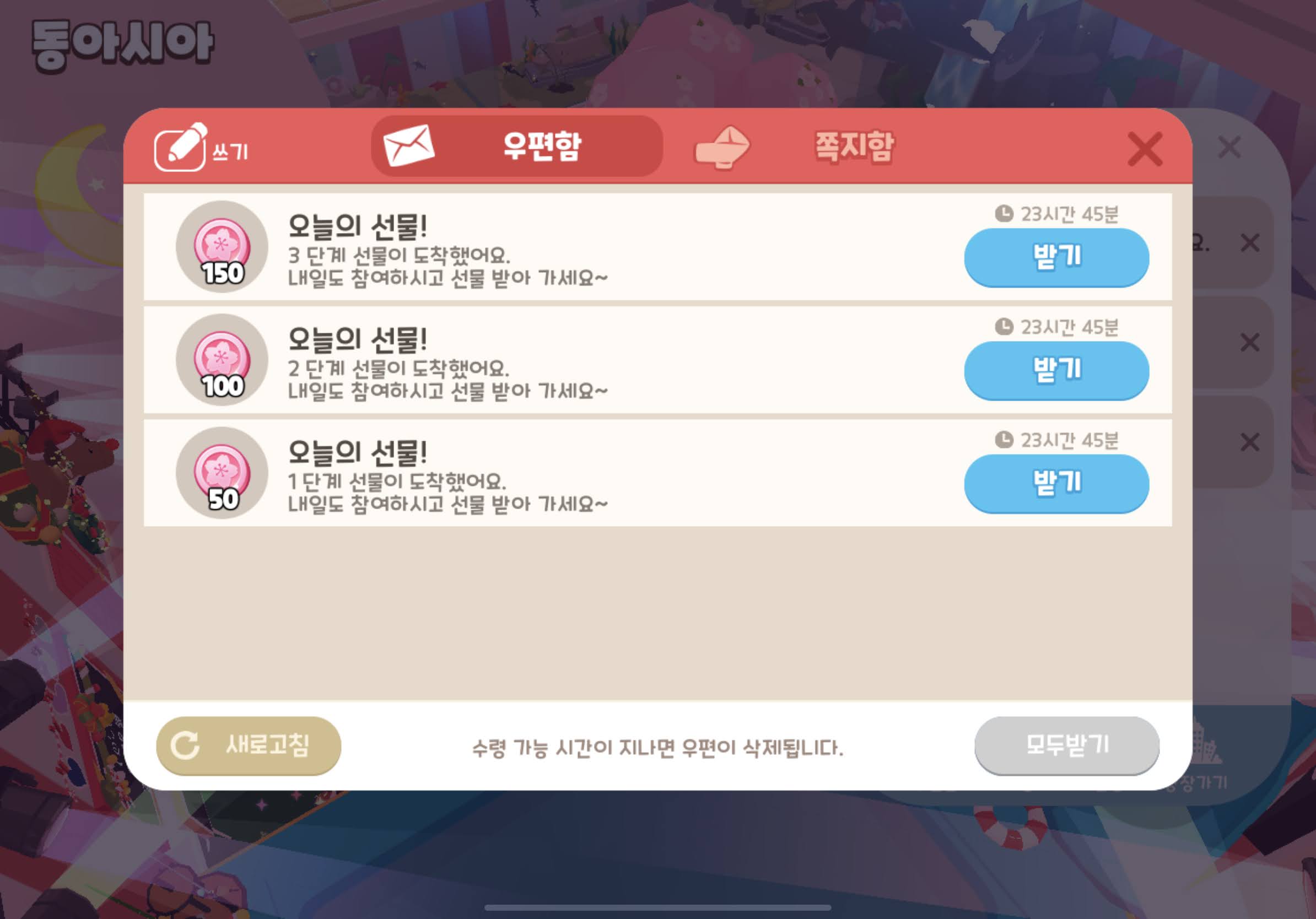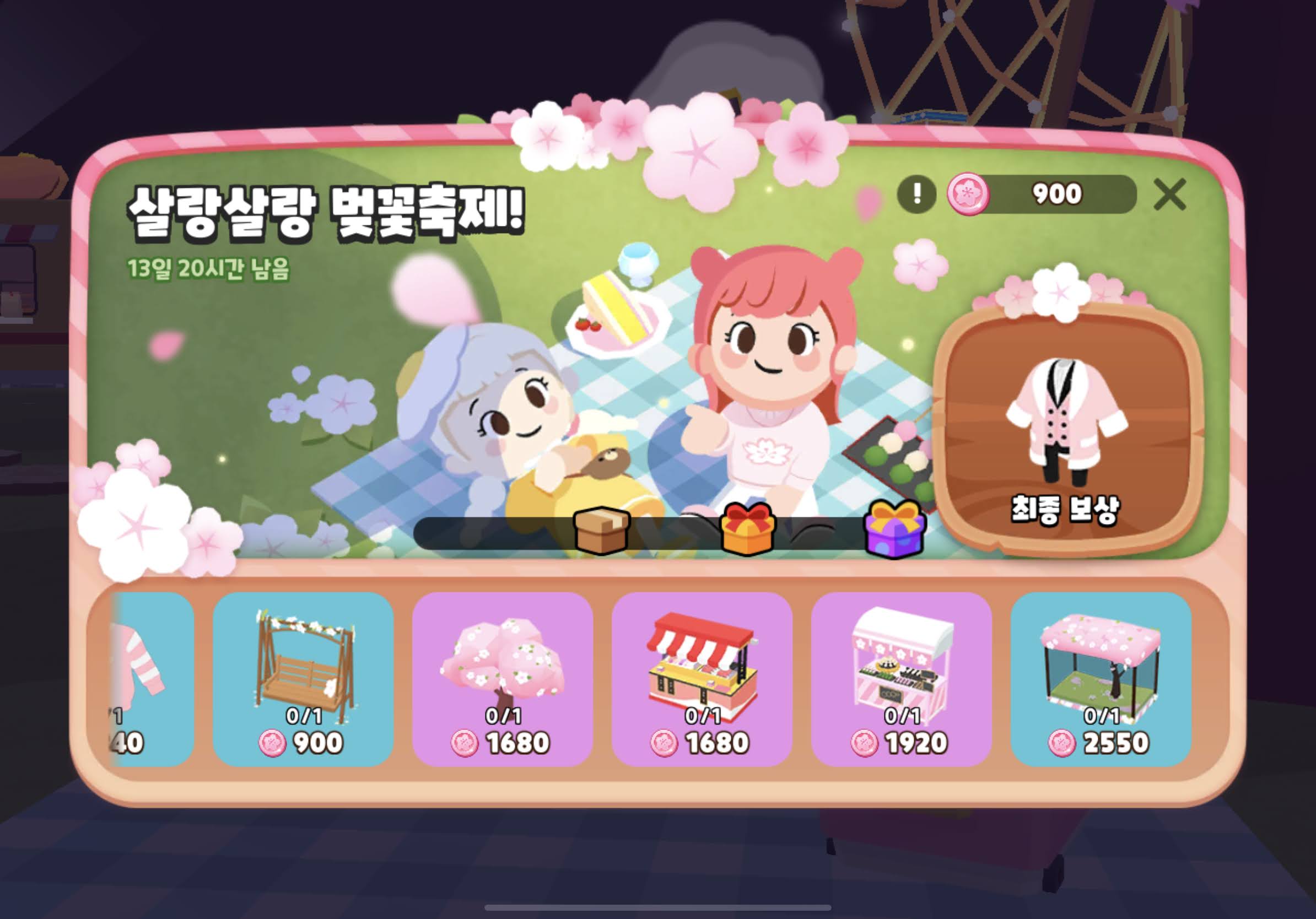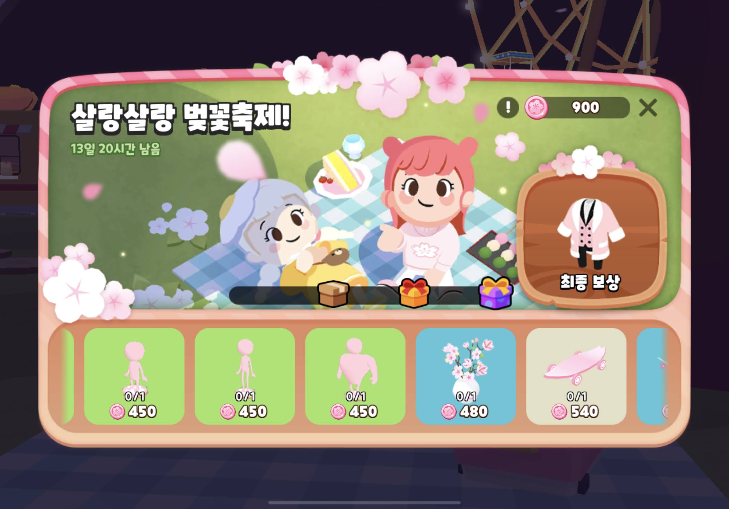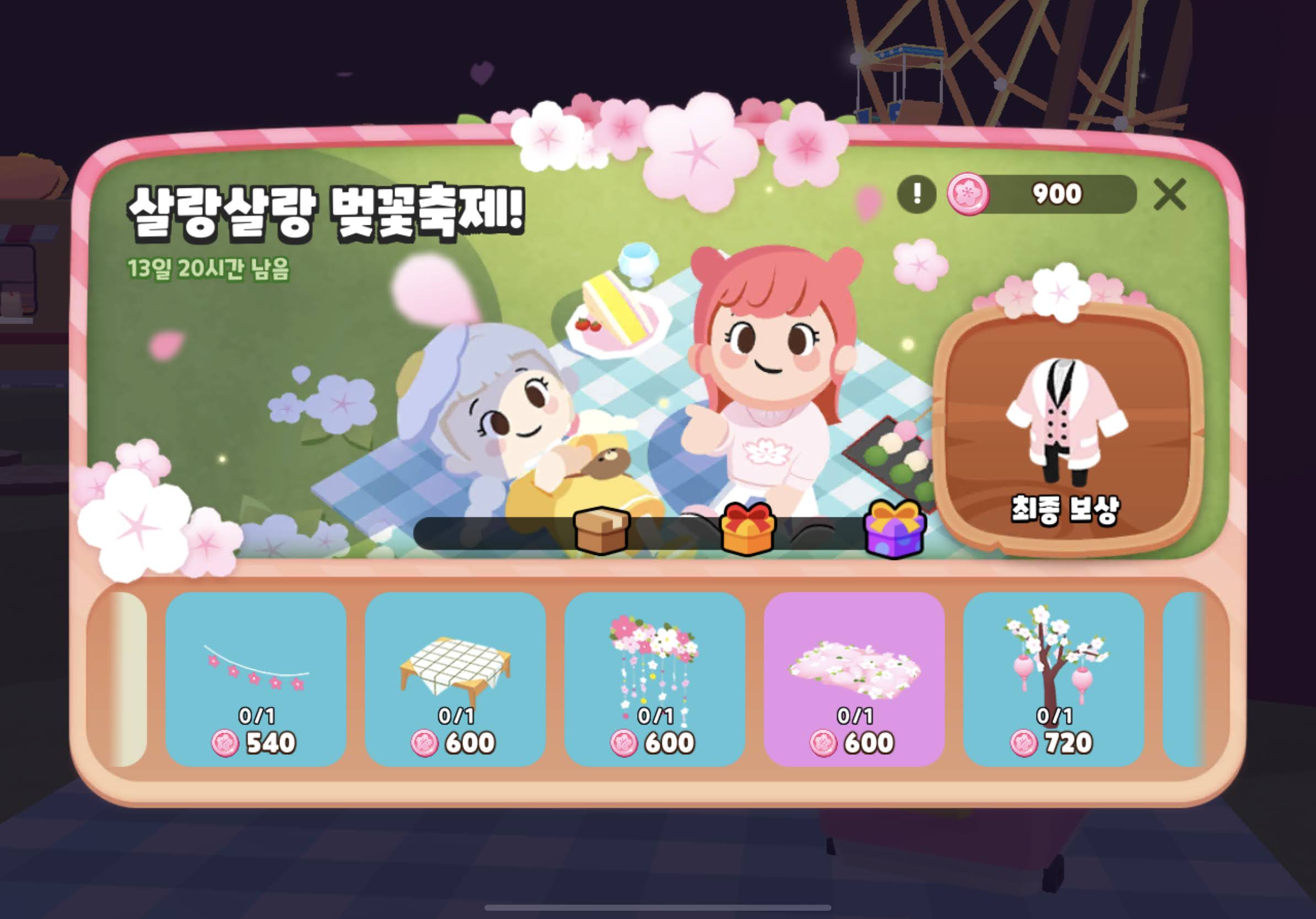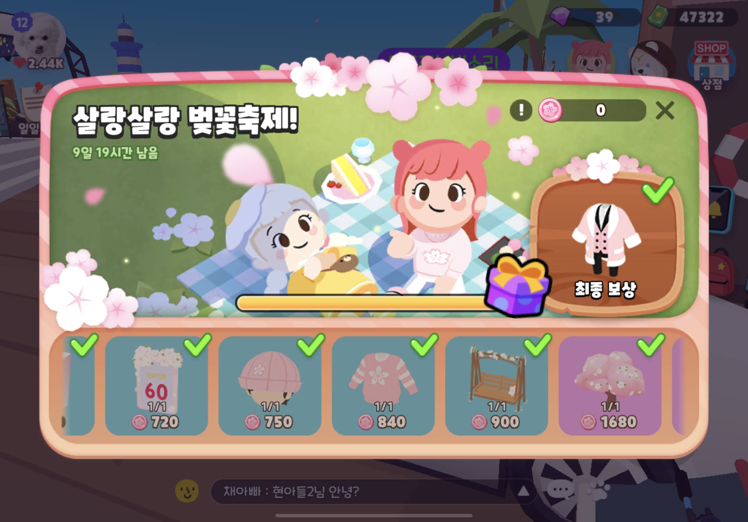 보상은 200코인 x 3배 = 600 벚꽃코인 + 벚꽃머리띠 !