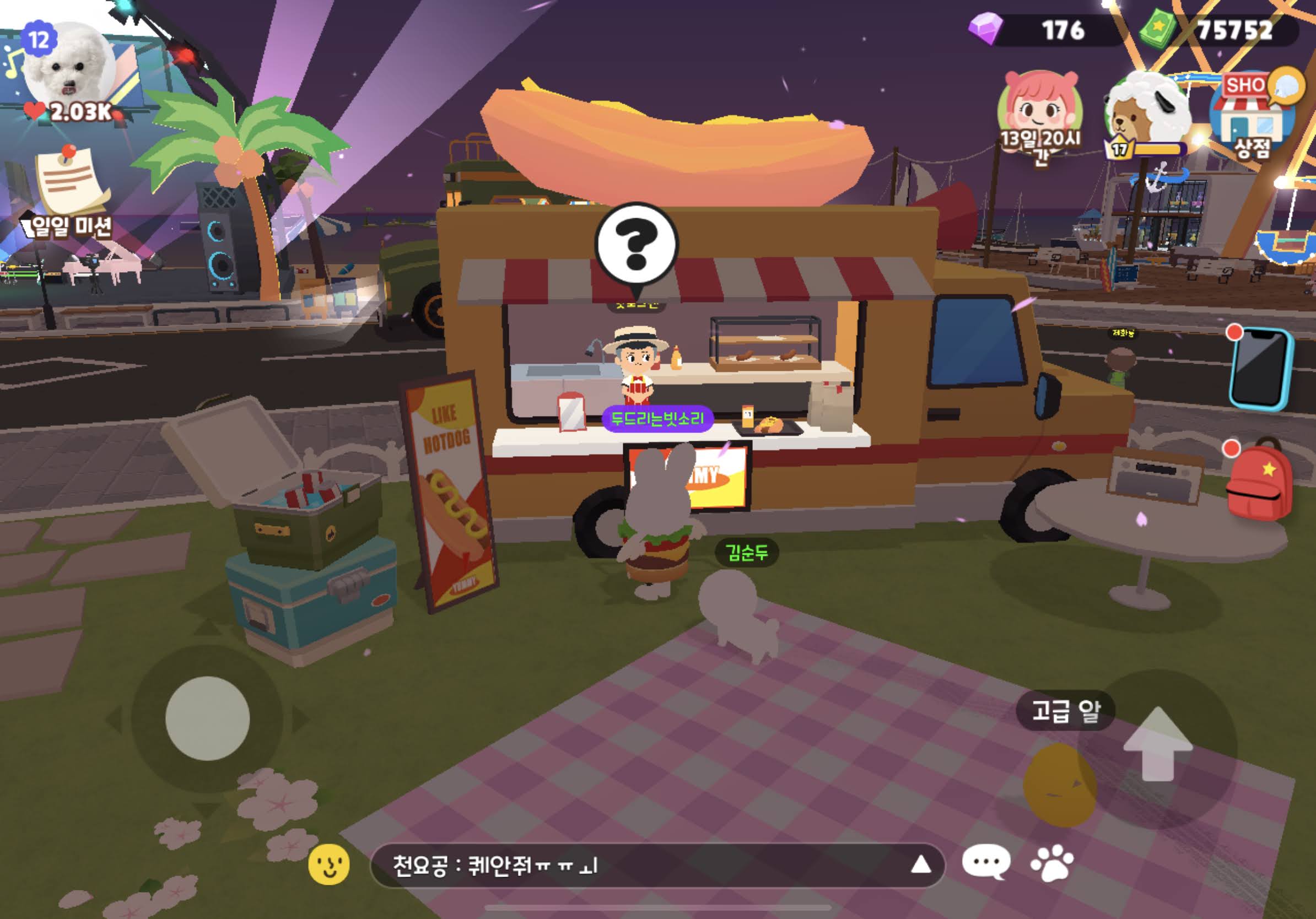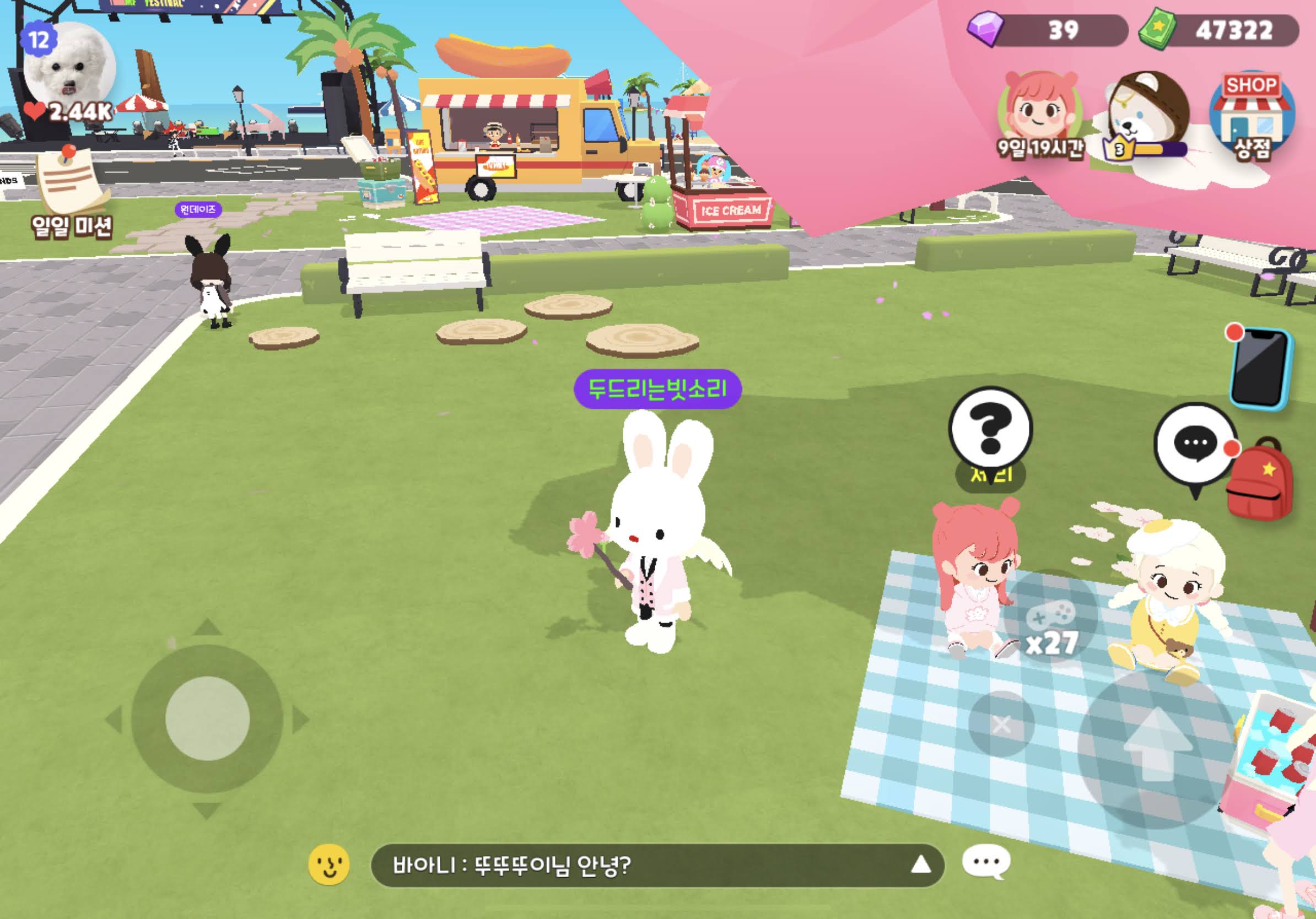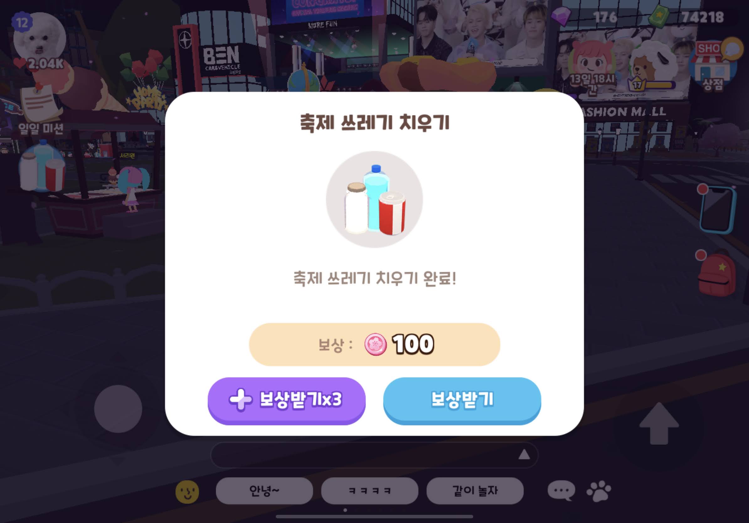 | 광장 제화룡하라부지 | 축제 쓰레기 치우기 8개 | 100코인 x 3배 = 300 벚꽃코인 |
