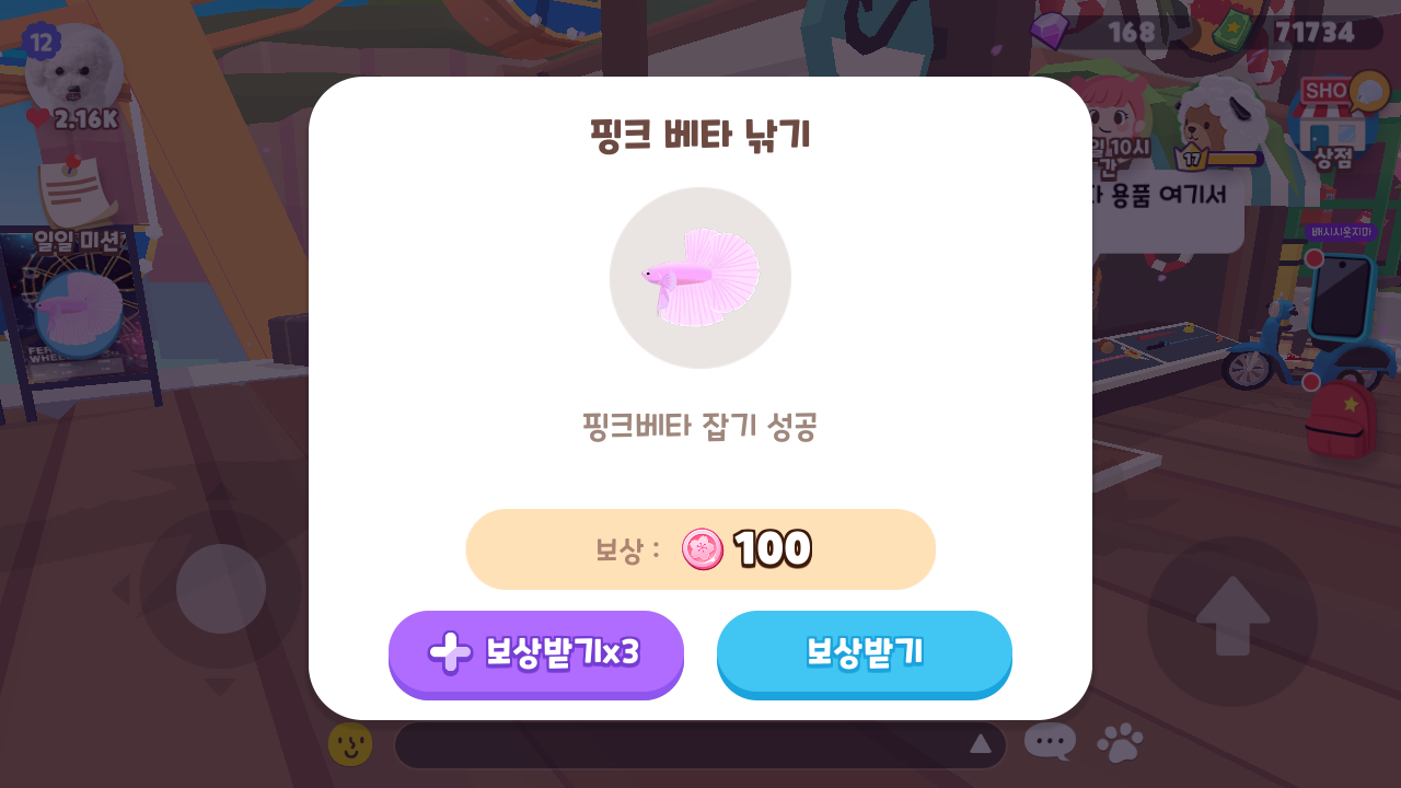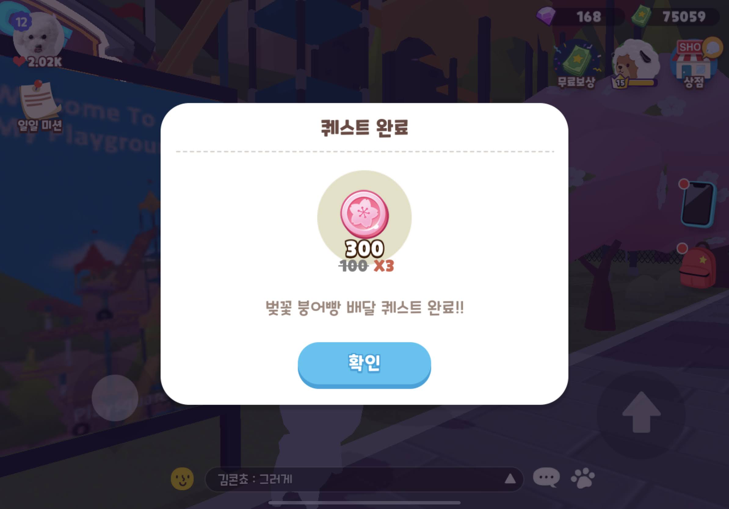보상은 100코인 x 3배 = 300 벚꽃코인 획득.