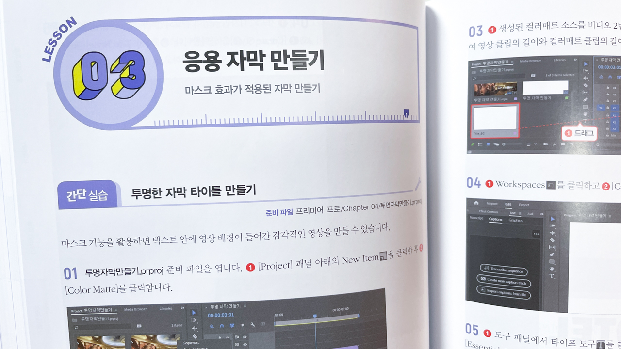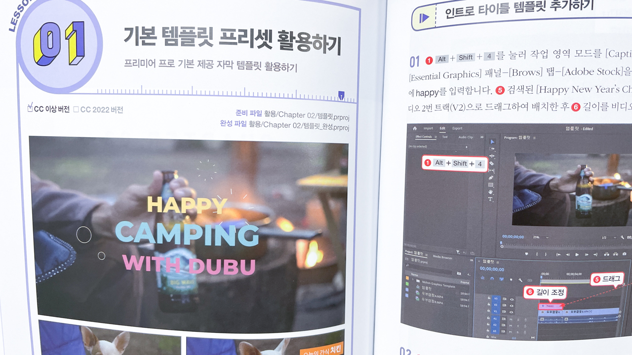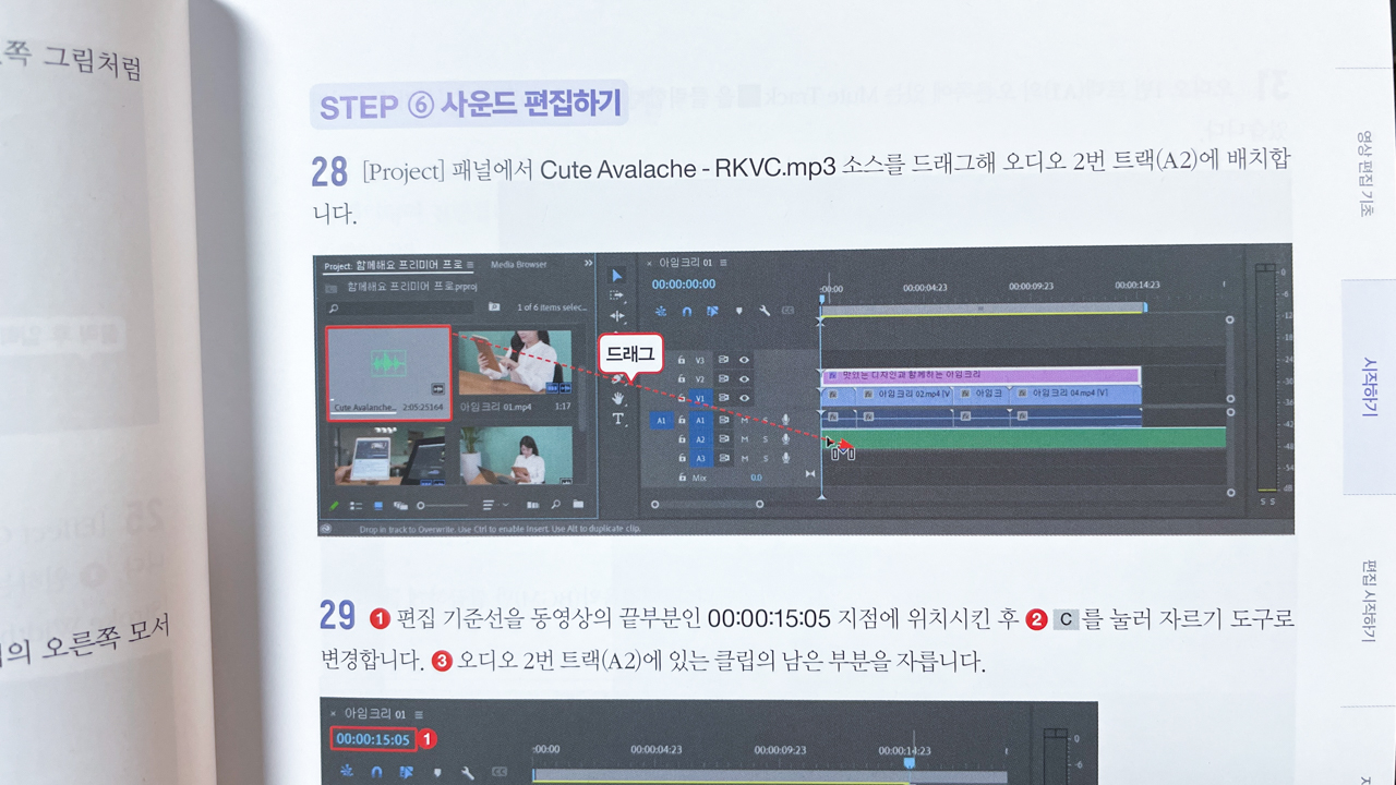 중간중간 나오는 간단 실습을 통해 실전 적용 가능한 편집 기법을 정말 간단하게 배울 수 있다.