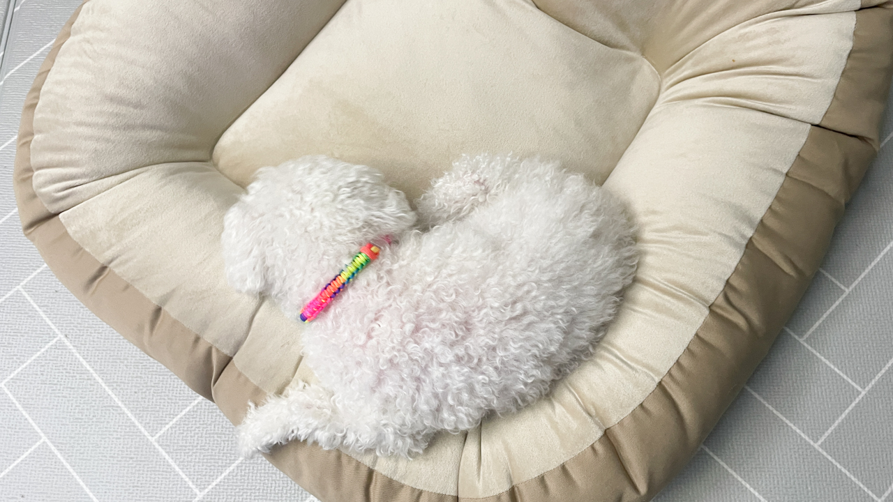 3.2kg 개토토는 이 푹신함이 익숙한지 쿠션만 들어가면 자려고.. 🙄🤣🤣🤣🤣
