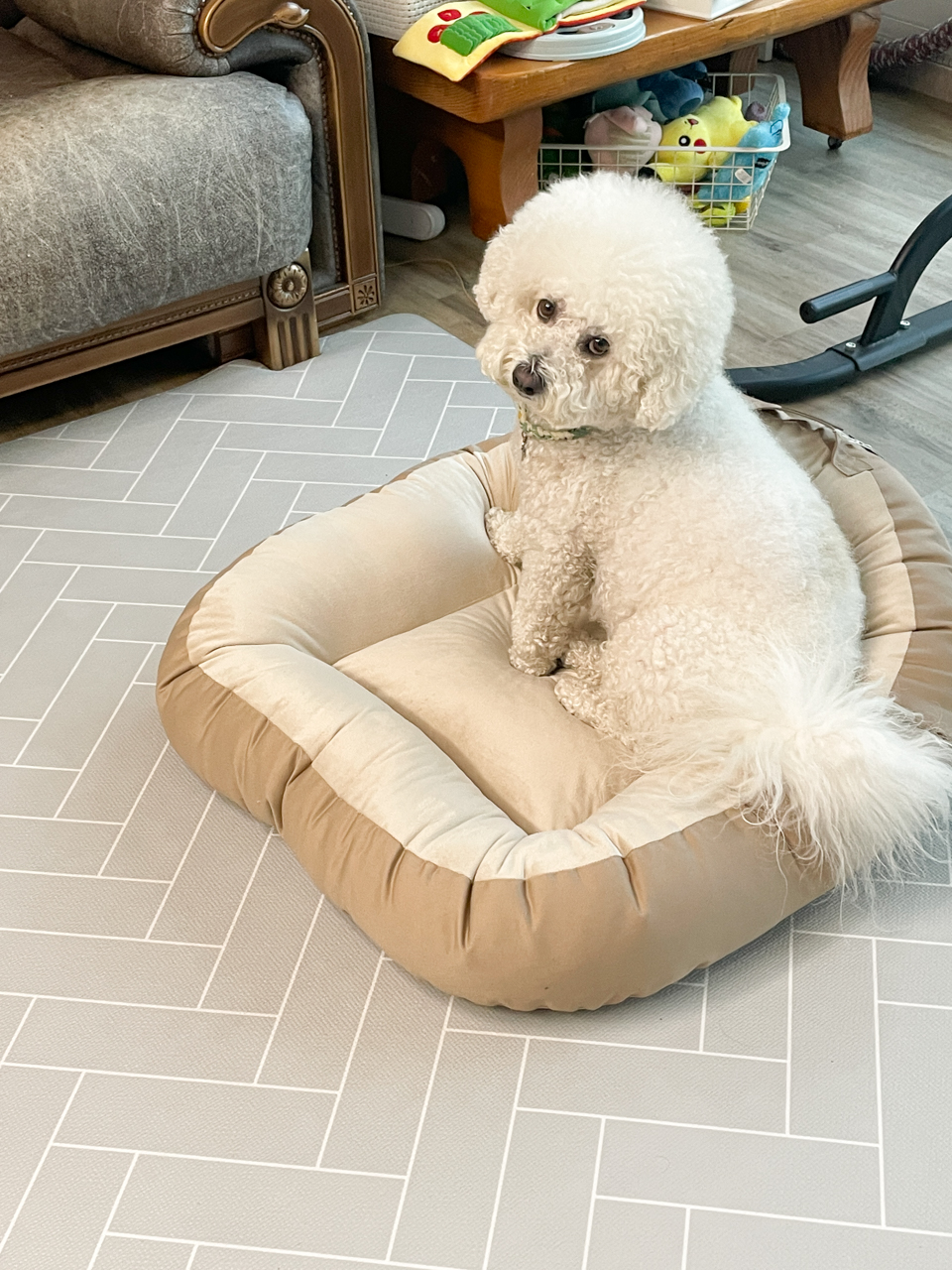 울 10kg 중형견 막둥이도 편안한지 잘 들어가 앉아 있다 !!