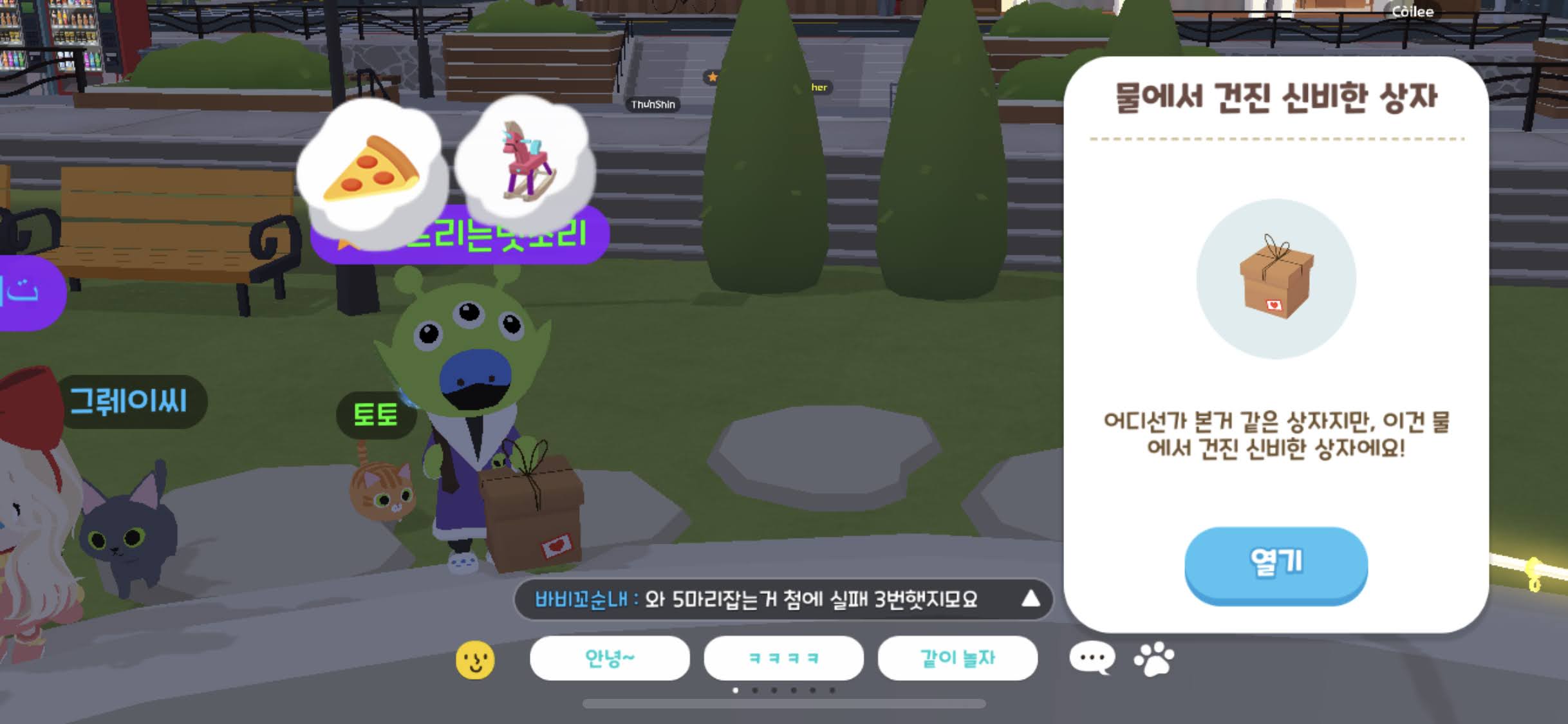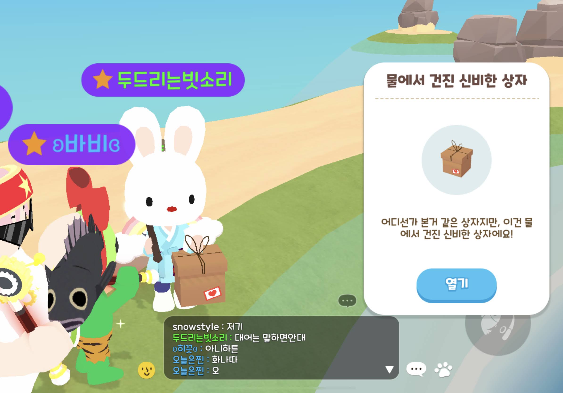 낚시 아이템 이벤트는, 위치 상관없이 물에서 낚시만 하면 건질 수 있다.