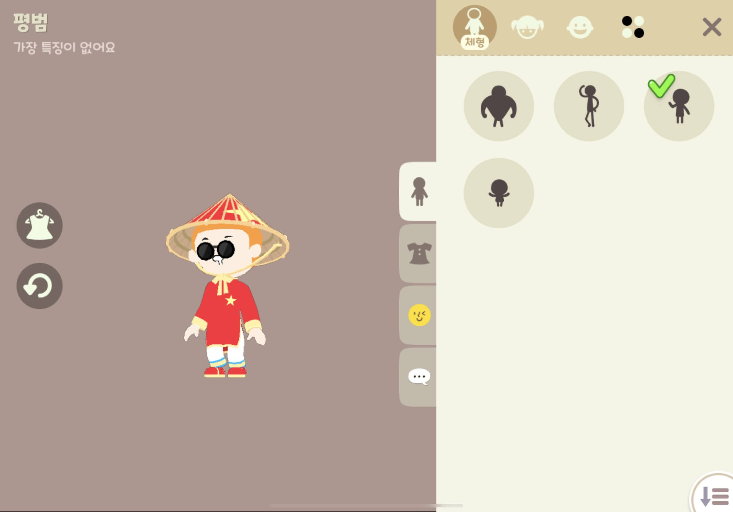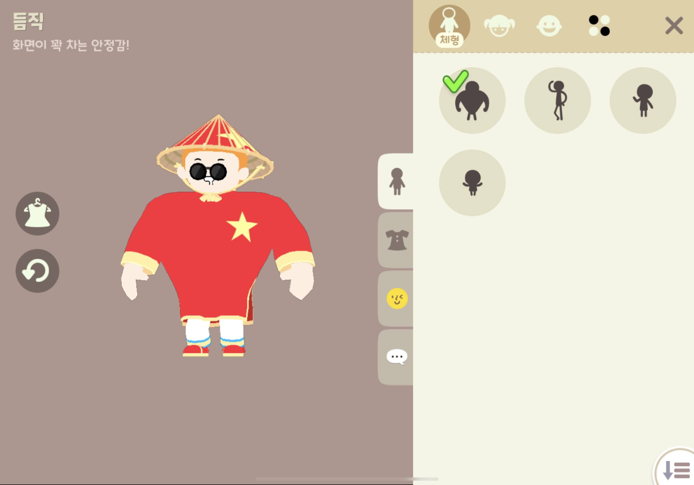 빨강 논라 / 빨강 별 아오자이 2종 / 빨강 꽃신 / 빨강 슬립온 / 빨강 칸동남 / 별 종이 우산으로 총 7가지 코스튬이다.
