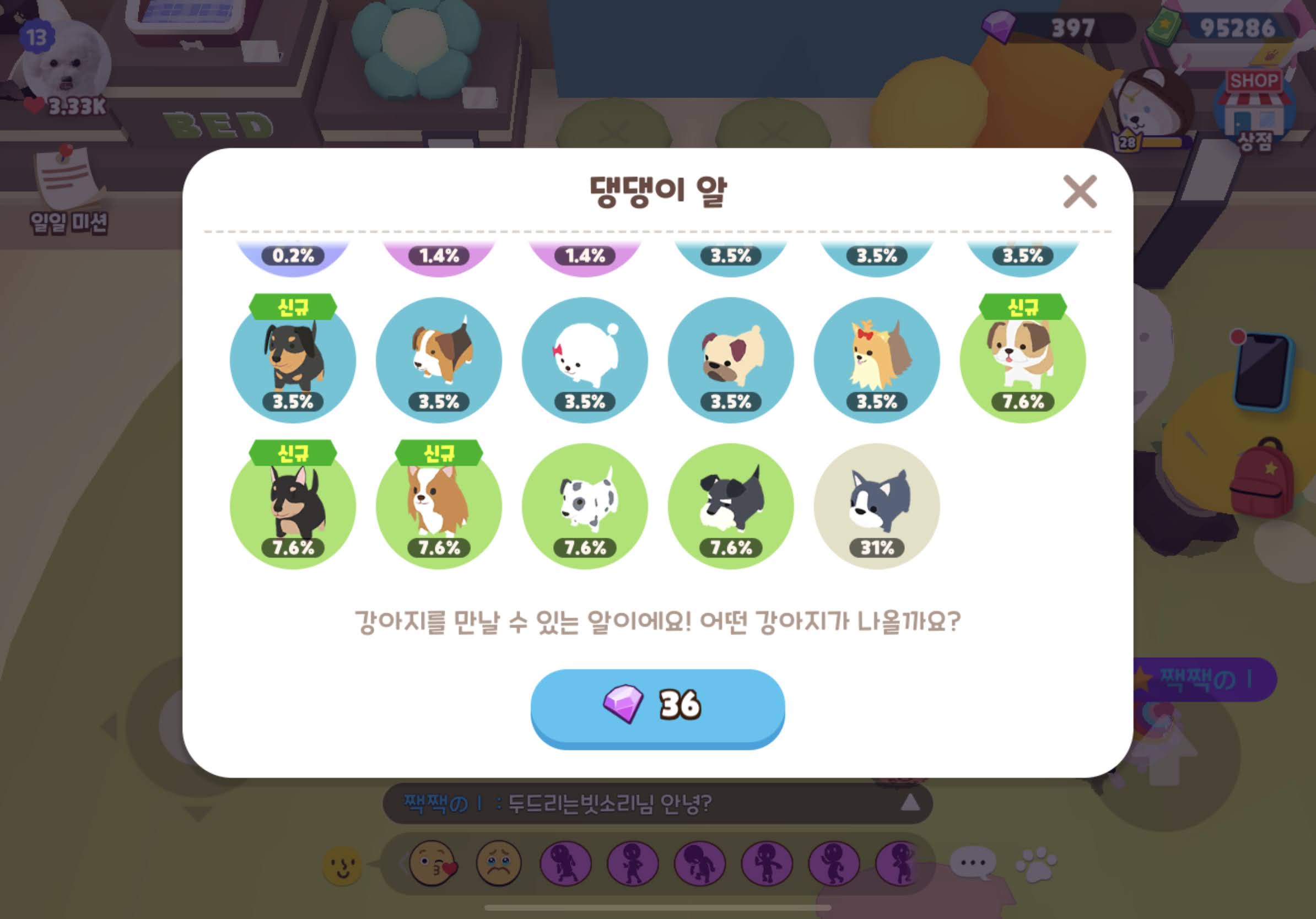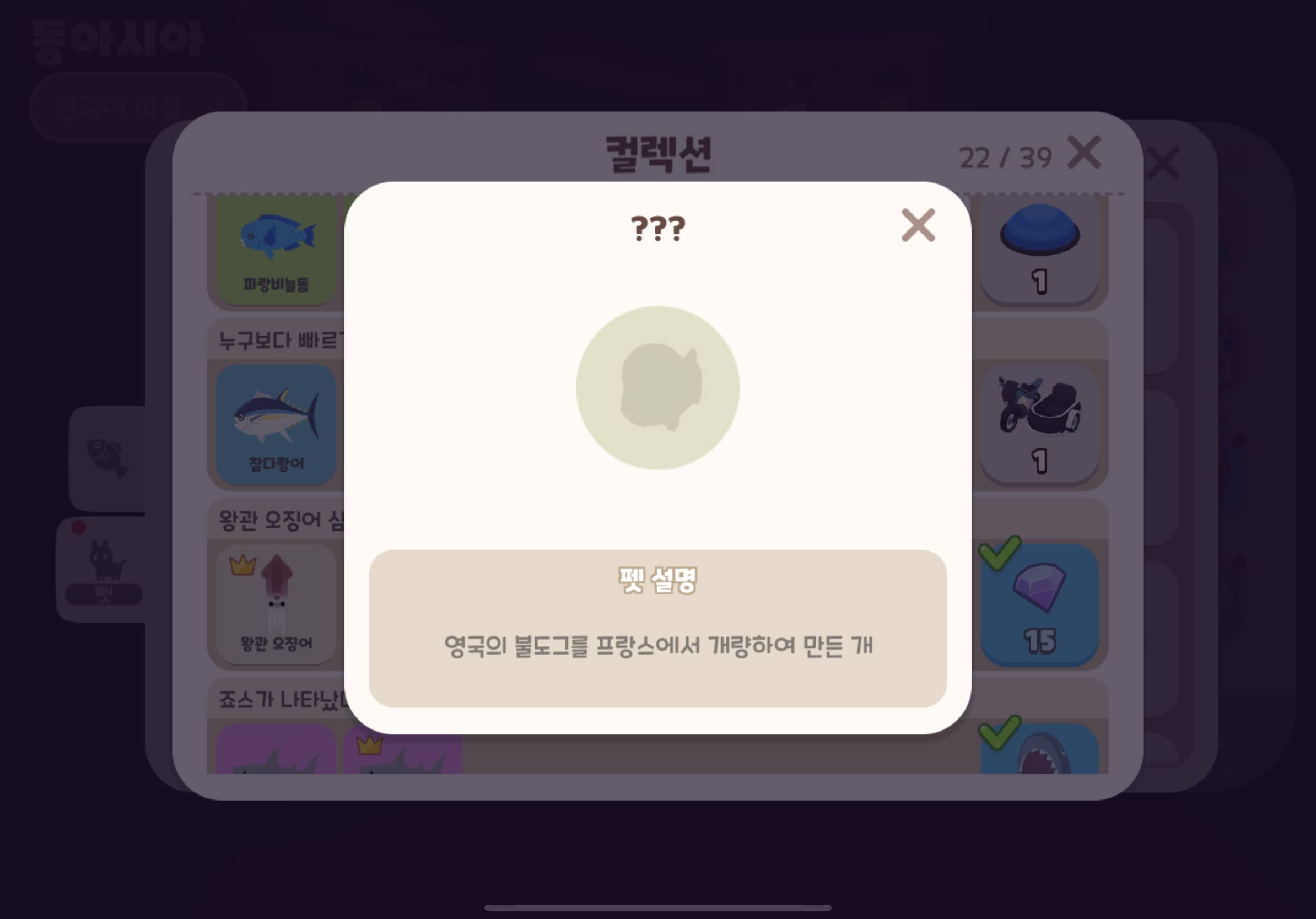 펫은 있는데! 도감에서 프렌치불독 자체가 사라져서.. 문의 넣고, 재접속하니 다시 받을 수 있었다.