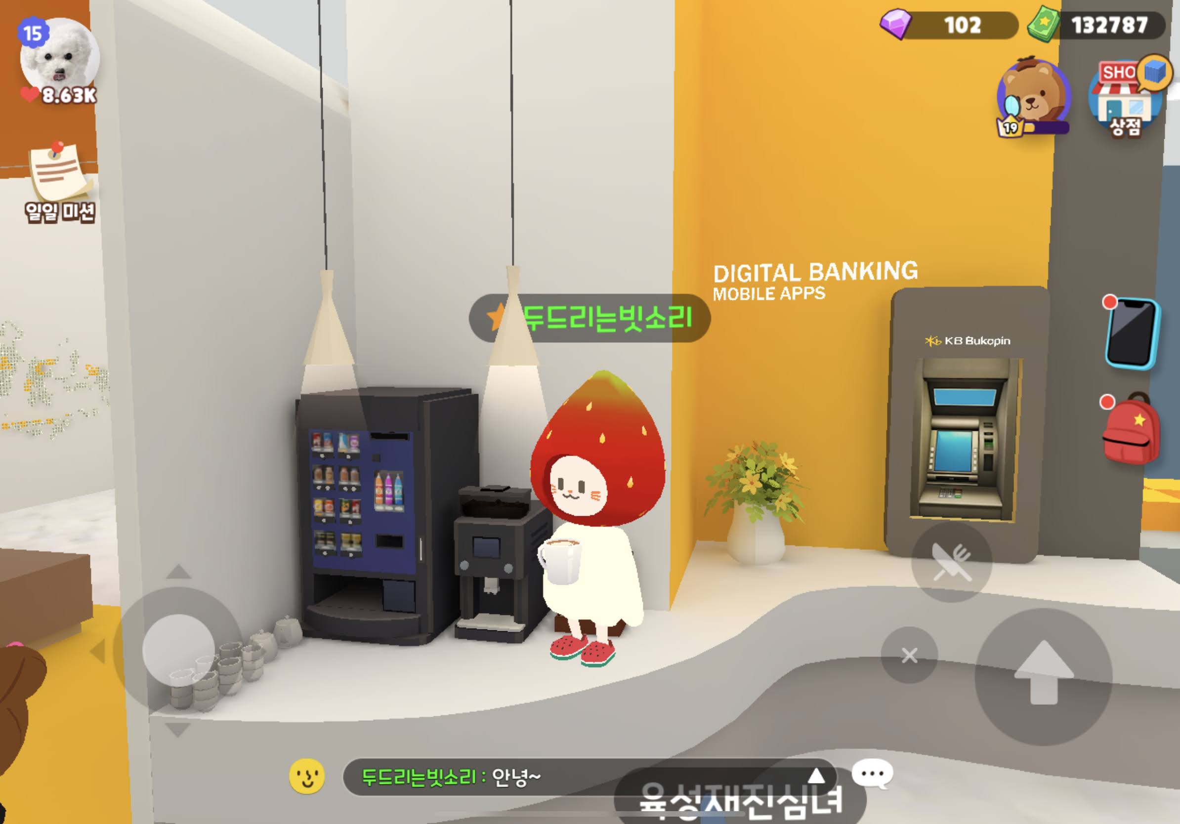 은행에 들어가서 쭉- 직진하면 돈을 맡길 수 있다.