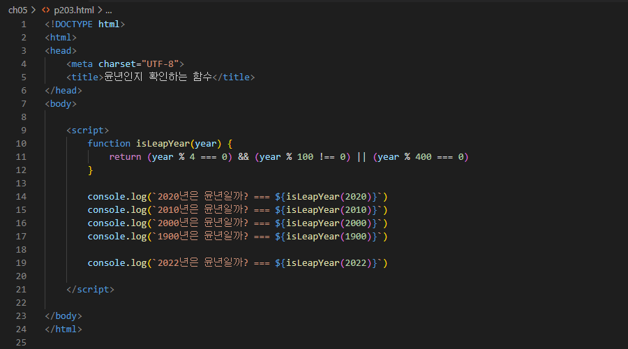 기본적인 함수 예제 👉 윤년을 확인하는 함수 만들기.