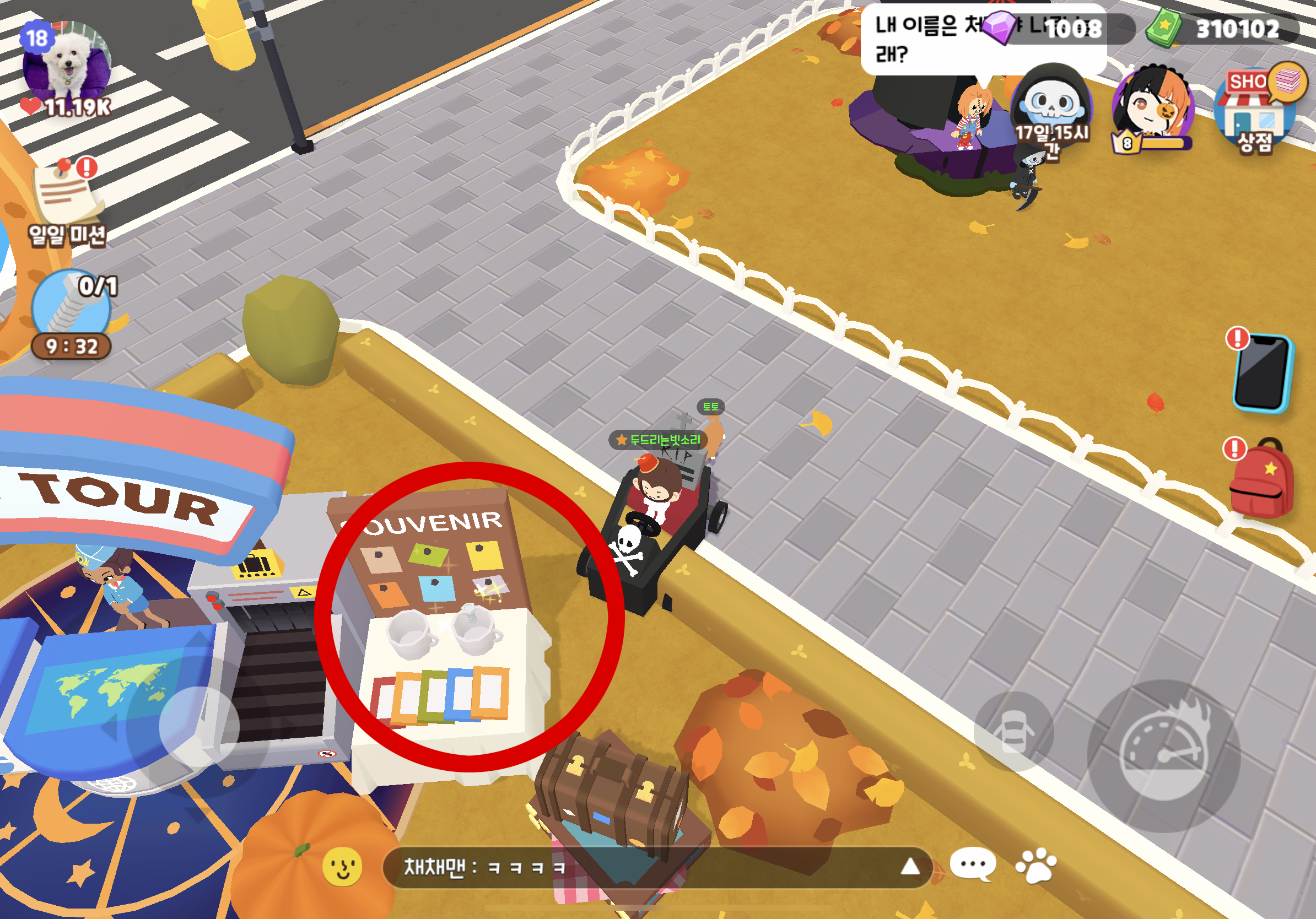 유령을 휴대폰으로 도저히 못잡겠다면.. 광장에 있는 처피를 찾아가자!
