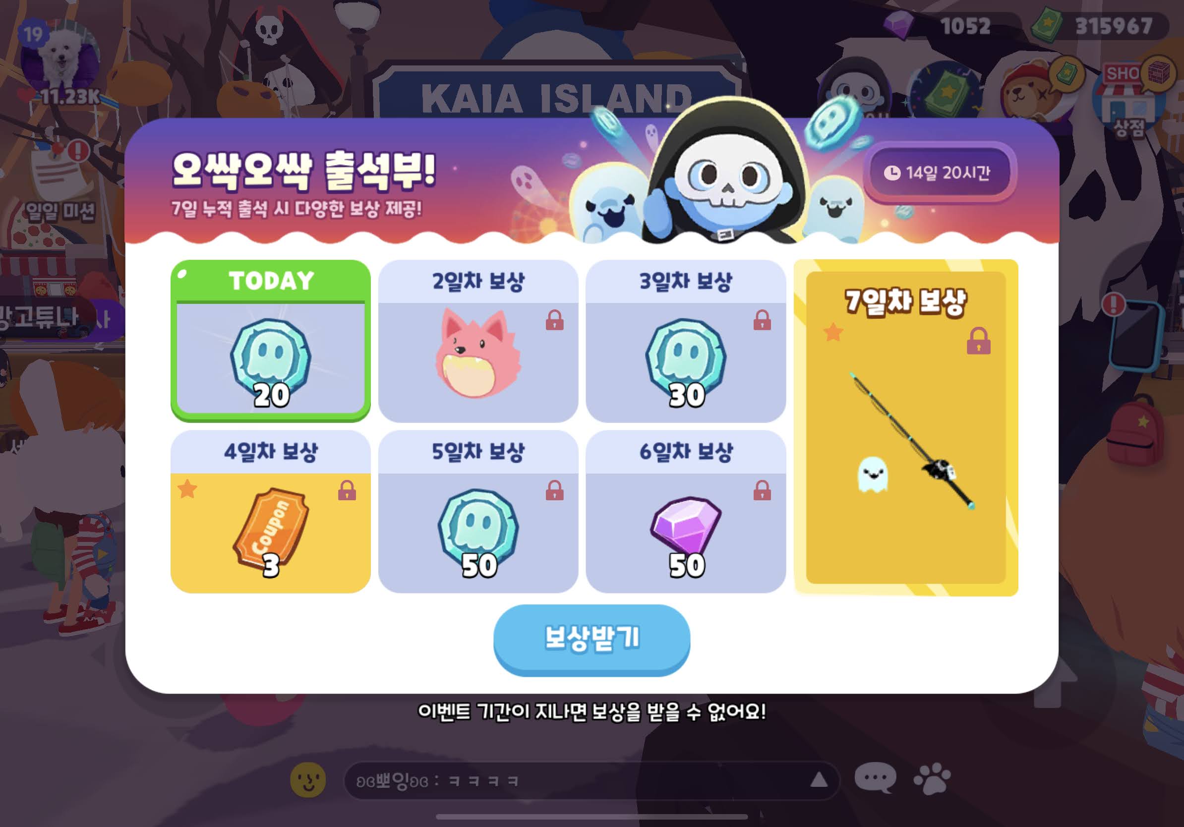 1달짜리 긴 이벤트라.. 오싹오싹 출석부! 도 같이 하고있으니..
