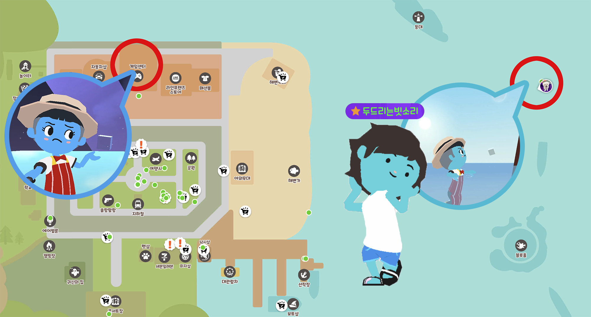 👍 게임센터 꼭대기! 열기구를 타고 게임센터로 떨어지면 된다.