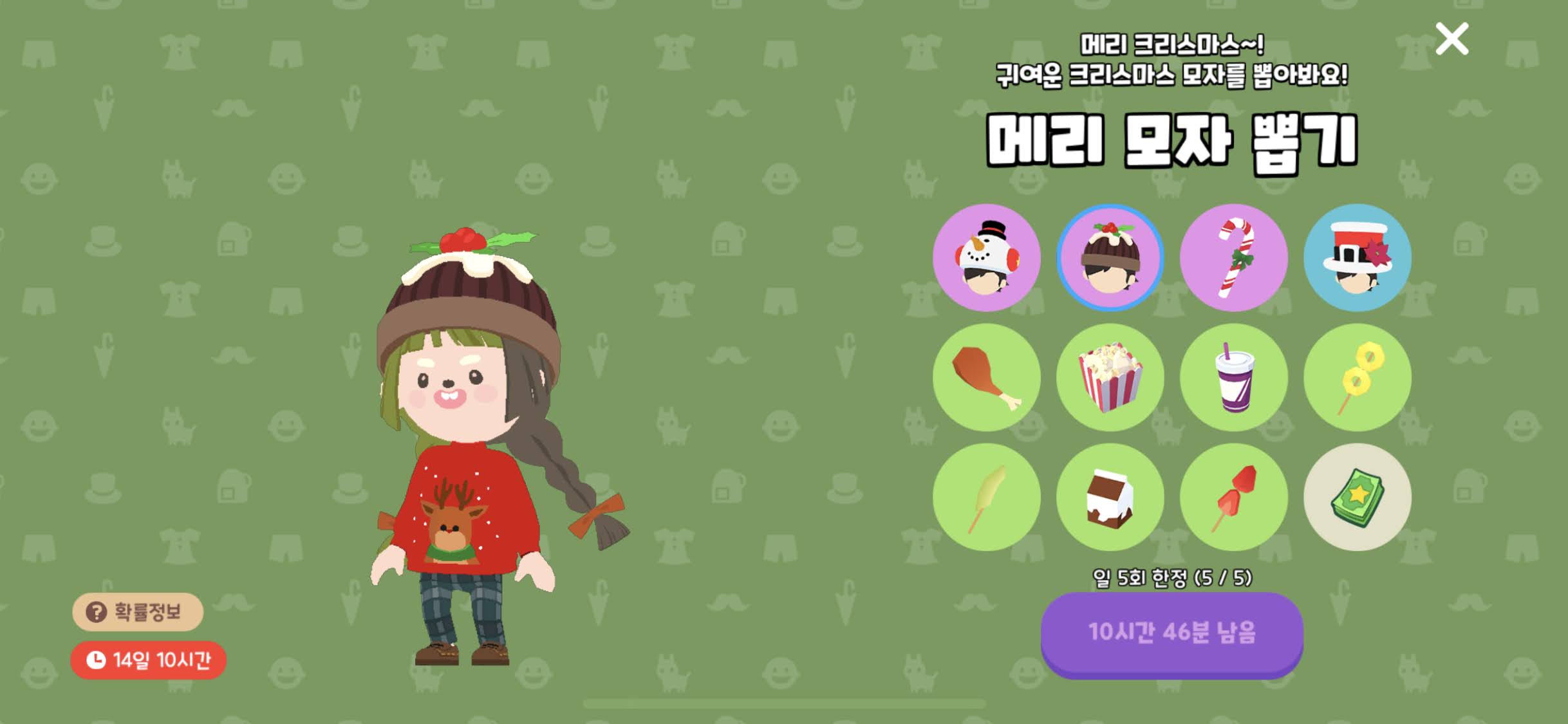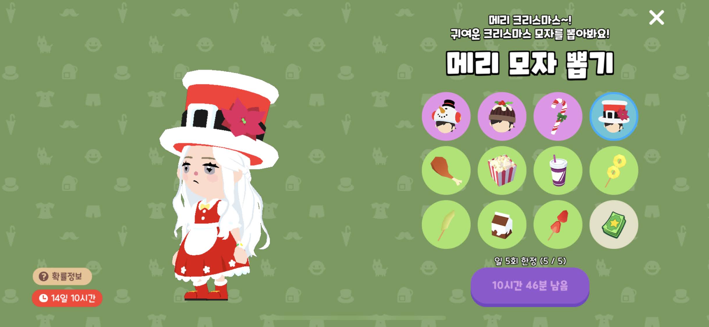 그리고 광고보기 메리 모자 뽑기 ! 크리스마스 뽑기 하루 5회권 😊
