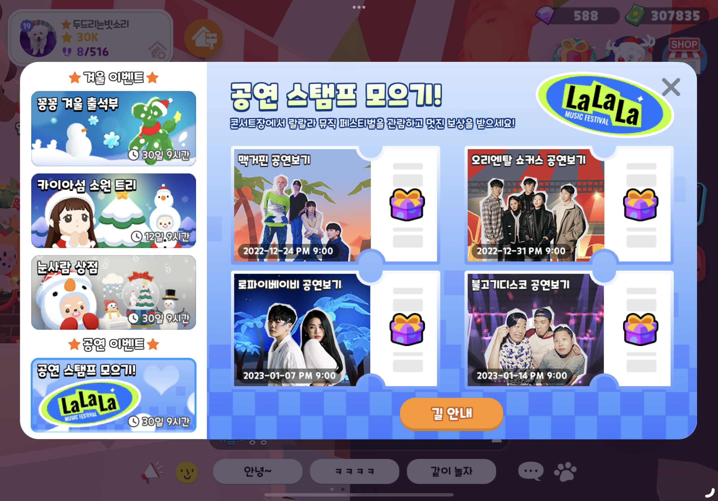 2주간 진행되는 이벤트 :) 눈사람 상점 퀘스트를 하면서 자연스럽게 클리어 됀다 !