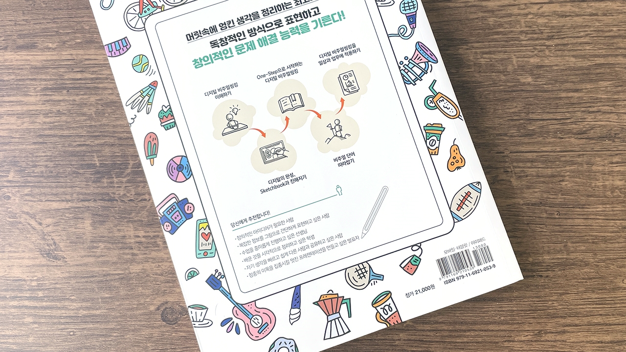 비주얼 씽킹이란? 비주얼 씽킹을 통한 효과적이며 긍정적인 전달 방법의 사례들을 이해합니다. 어떤 프로세스를 통해 비주얼 씽킹이 진행되는지, 아날로그/디지털 디지털 씽킹의 장점을 알아보고 이 책에서 실습 해 볼 Sketchbook앱 핵심 사용법을 간단하게 알려줍니다 :)