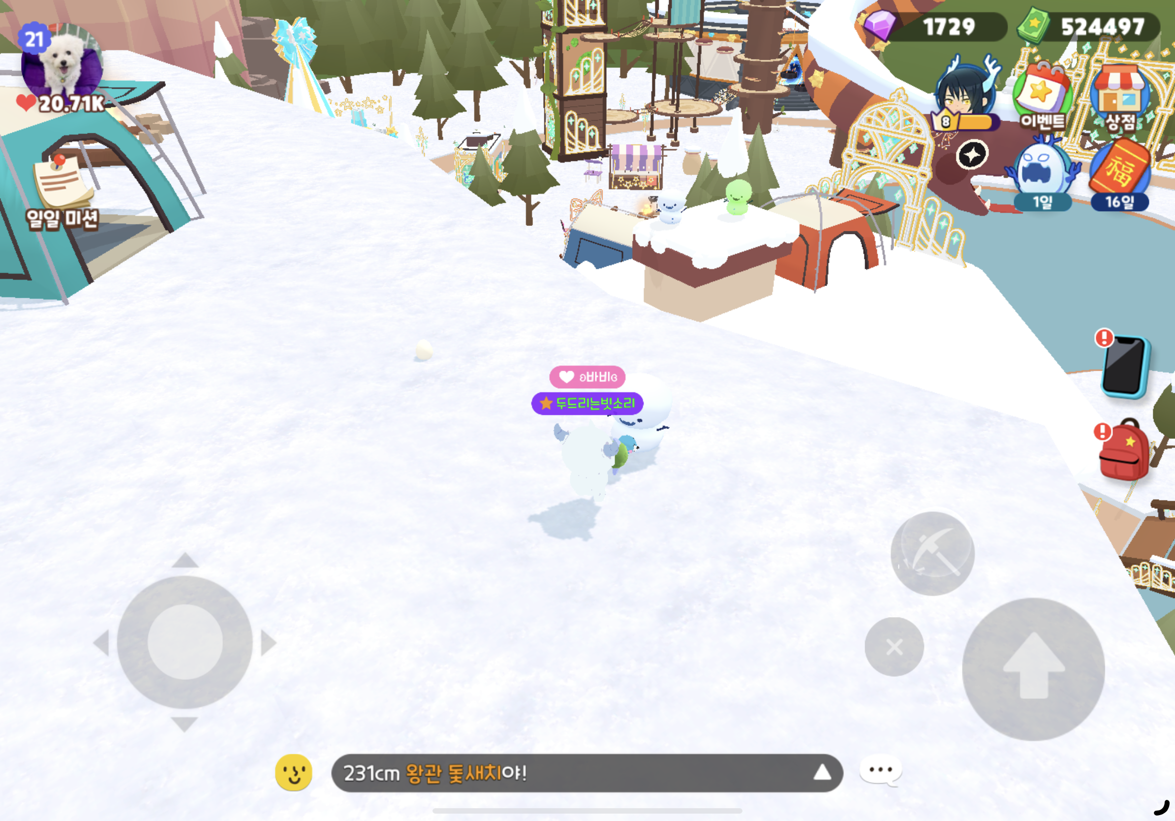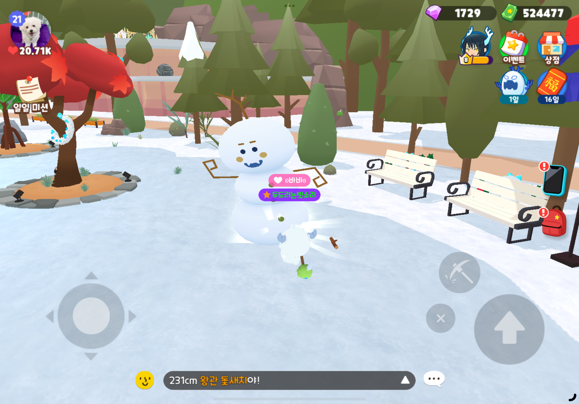 랜덤상자 들고 있는 포즈가 너무 귀엽.. 그리고 정신놓은 눈사람은 도끼로? 뿅망치로? 때릴 때 마다 포즈가 웃기다.