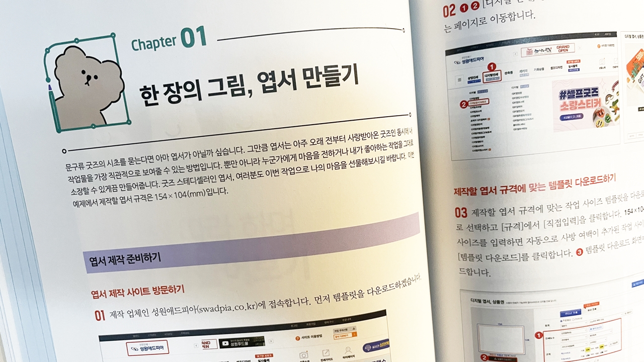 출력을 하려면 알아야 할 재단사이즈나 비트맵 백터.. 그리고 제작시 많이 이용하는 사이트 + 제작 프로세서까지 모두 다 알려주는데, 요만한 책 진짜 어딜가도 못찾는다!!