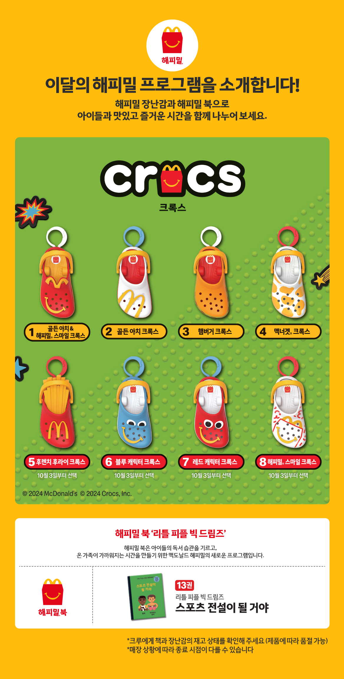 해피밀 3세트 주문하면 배송비 없이 16,500원. 그래서 3세트씩 2번 주문했고 총 6개의 크록스를 얻었다!!