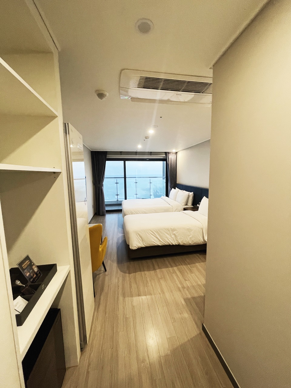 앞에 파라다이스 호텔이나 팔레드시즈 레지던스&호텔같은 경우에는 지어진지 15년은 훌쩍 넘어서 낮은 건물이 되어버렸어요. 그래서 꽤 최근에 지어진 영무파라드호텔이 바닷가 바로 앞은 아니지만, 두번째 라인에 있지만 쫙 펼쳐진 바다뷰가 정말 시원하게 다가온답니다.