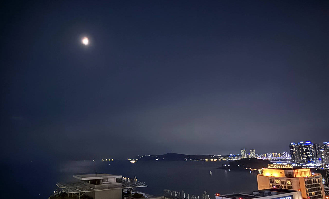 남해나 거제 바닷가에서는 밤이면 바다가 까맣게 아무것도 보이지 않는데, 해운대 밤바다는 보이긴 보입니다.