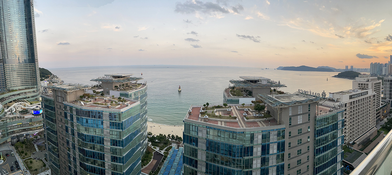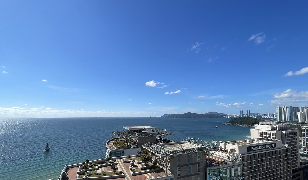 해운대에 숙소를 잡는 이유는 바다뷰 때문이죠. 영무 파라드호텔 고층에서는 바다가 시원하게 보인답니다.