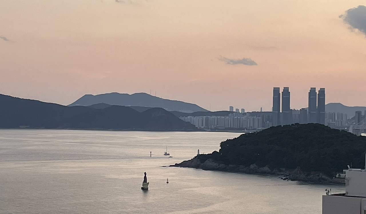 아침 날씨가 너무 좋아서 저 멀리 대마도까지 보이는 해운대 바다뷰 영무파라드호텔..