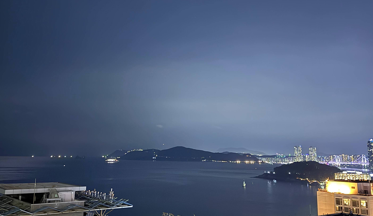 남해나 거제 바닷가에서는 밤이면 바다가 까맣게 아무것도 보이지 않는데, 해운대 밤바다는 보이긴 보입니다.
