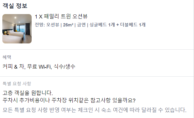 10월중순 기준 10만원 초반의 금액으로 큰침대+작은침대 총 3인까지 이용할 수 있는 방을 예약했답니다.