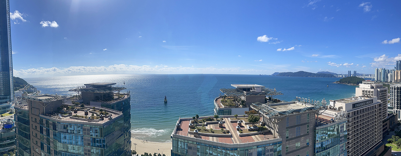 해운대에 숙소를 잡는 이유는 바다뷰 때문이죠. 영무 파라드호텔 고층에서는 바다가 시원하게 보인답니다.