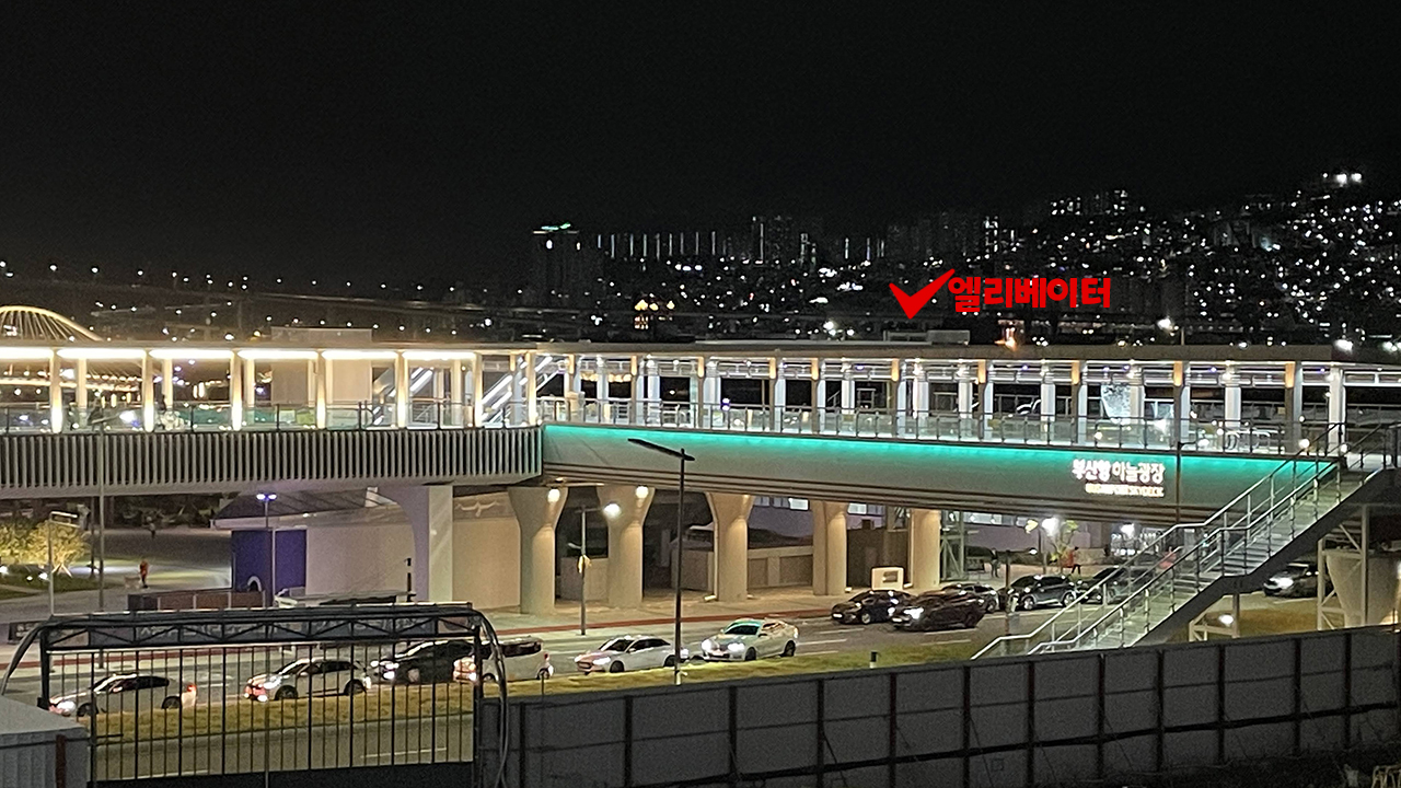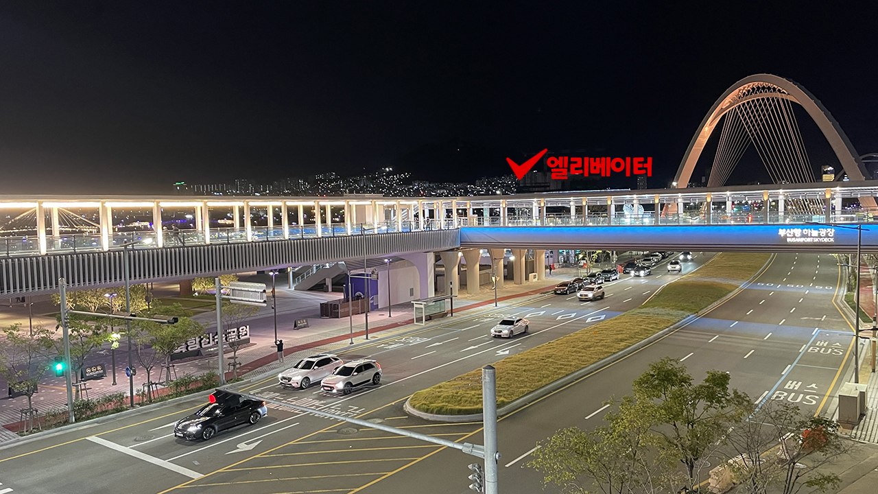 부산항 하늘광장 육교를 지나면 북항친수공원쪽 엘리베이터가 있습니다. 휠체어/유모차 이용이라면 친수공원쪽 엘리베이터를 이용하거나.. 부산역앞 큰 건물인 협성마리나 건물을 이용해야 합니다 ㅜㅜ