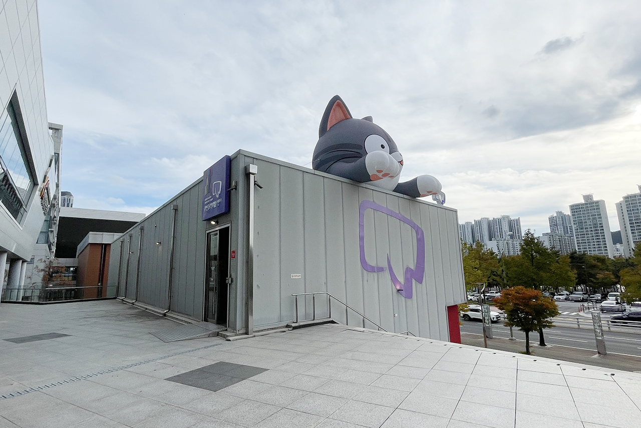 참 웹툰센터는 컨테이너 박스 위에 거대 야옹이가 반겨주고 있는 건물을 찾으면 된다. 컨테이너로 증축한 건물인듯.