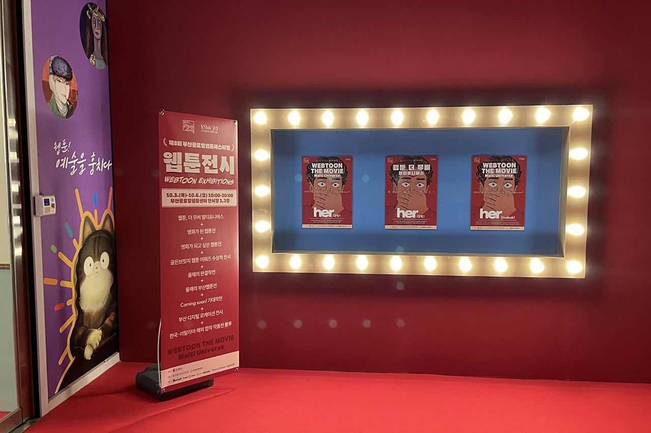 1층에는 영화나 드라마로 제작된 웹툰들이 전시되어 있다.