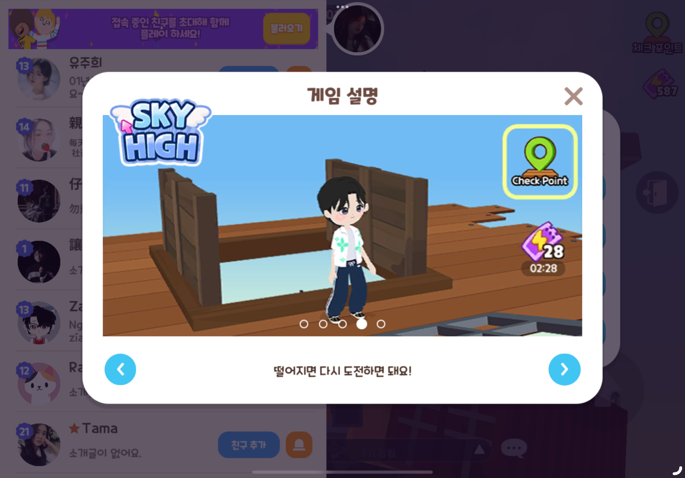 떨어지면 일정 횟수만큼 다시 도전 가능하다. 게임티켓 30개까지 쓸 수 있는듯. 헐.. 일부러 떨어지면 안되겠네 !!