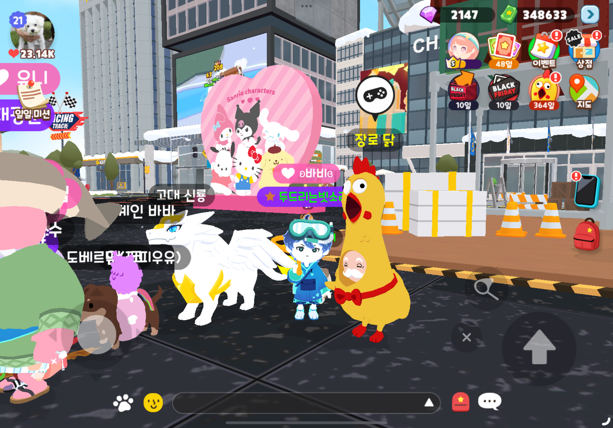 벌써 광장에 가면 고무닭 코스튬 입은 유저들이 많다.