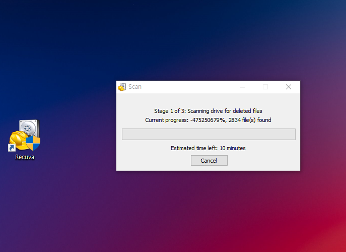 저는 2GB가 넘는 파일을 골랐고, 복구를 시작했습니다 !!